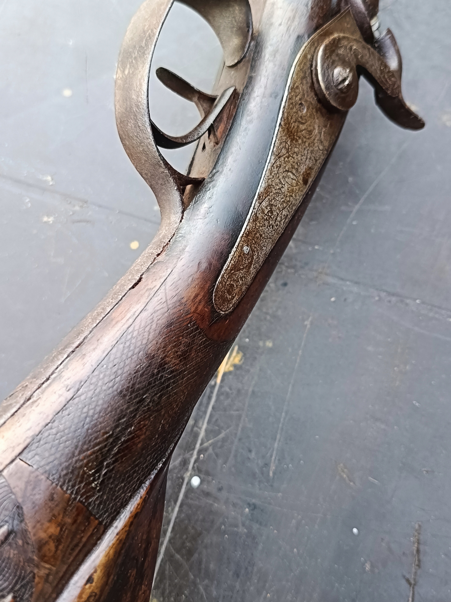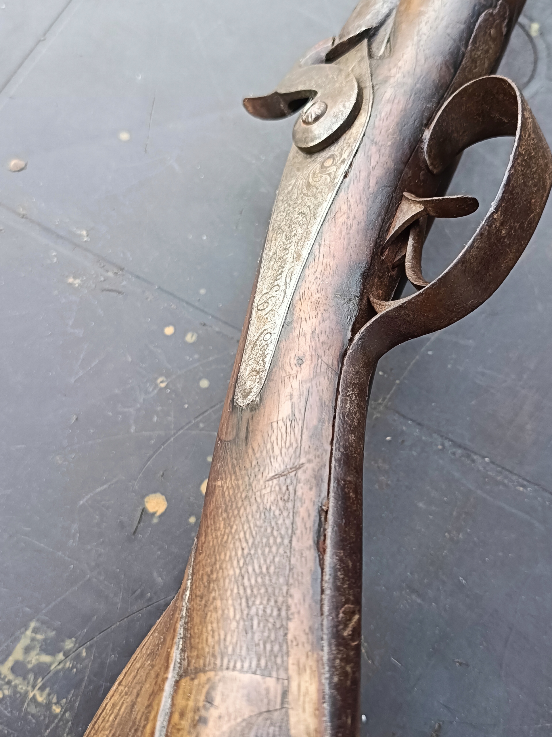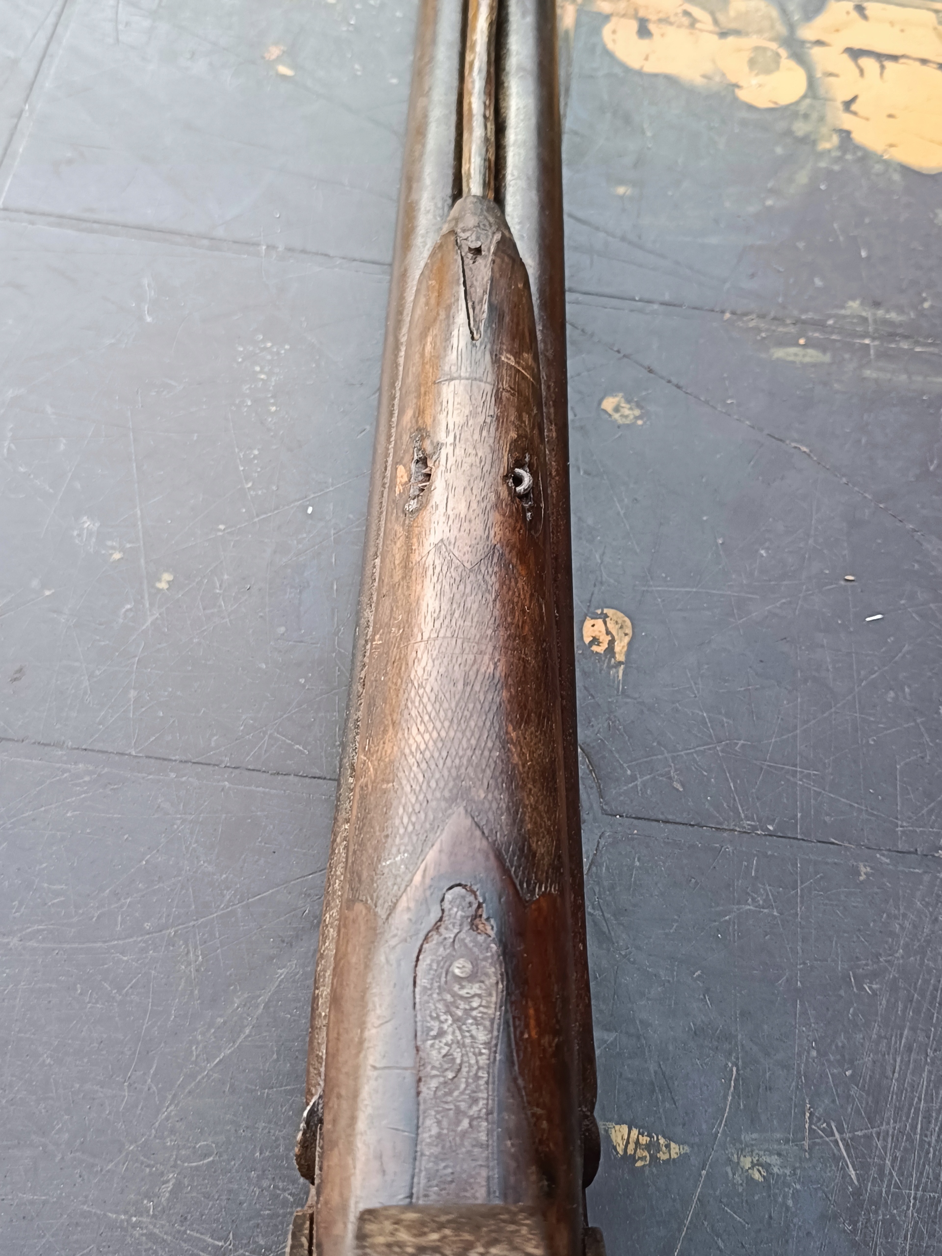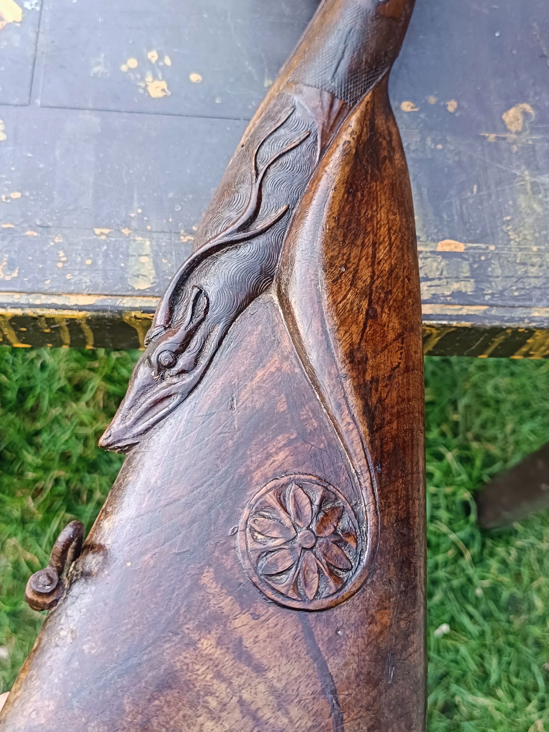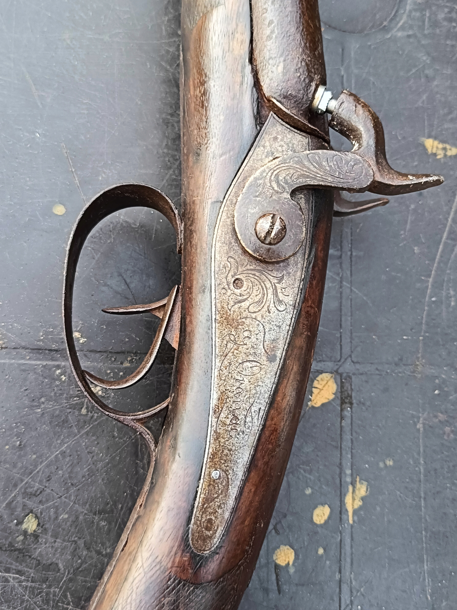 Загрузка спереди. Вы можете произвести сухой выстрел, двойную дро. Замки спускового крючка затягиваются на 2 хода. Прямой ствол в плохом состоянии из-за выбоин. Дерево без трещин, в относительно хорошем состоянии. Один камин заменили, но резьба у него оторвалась.