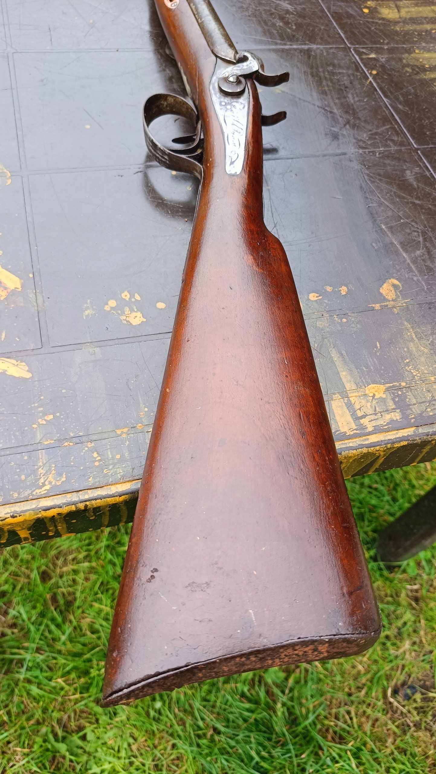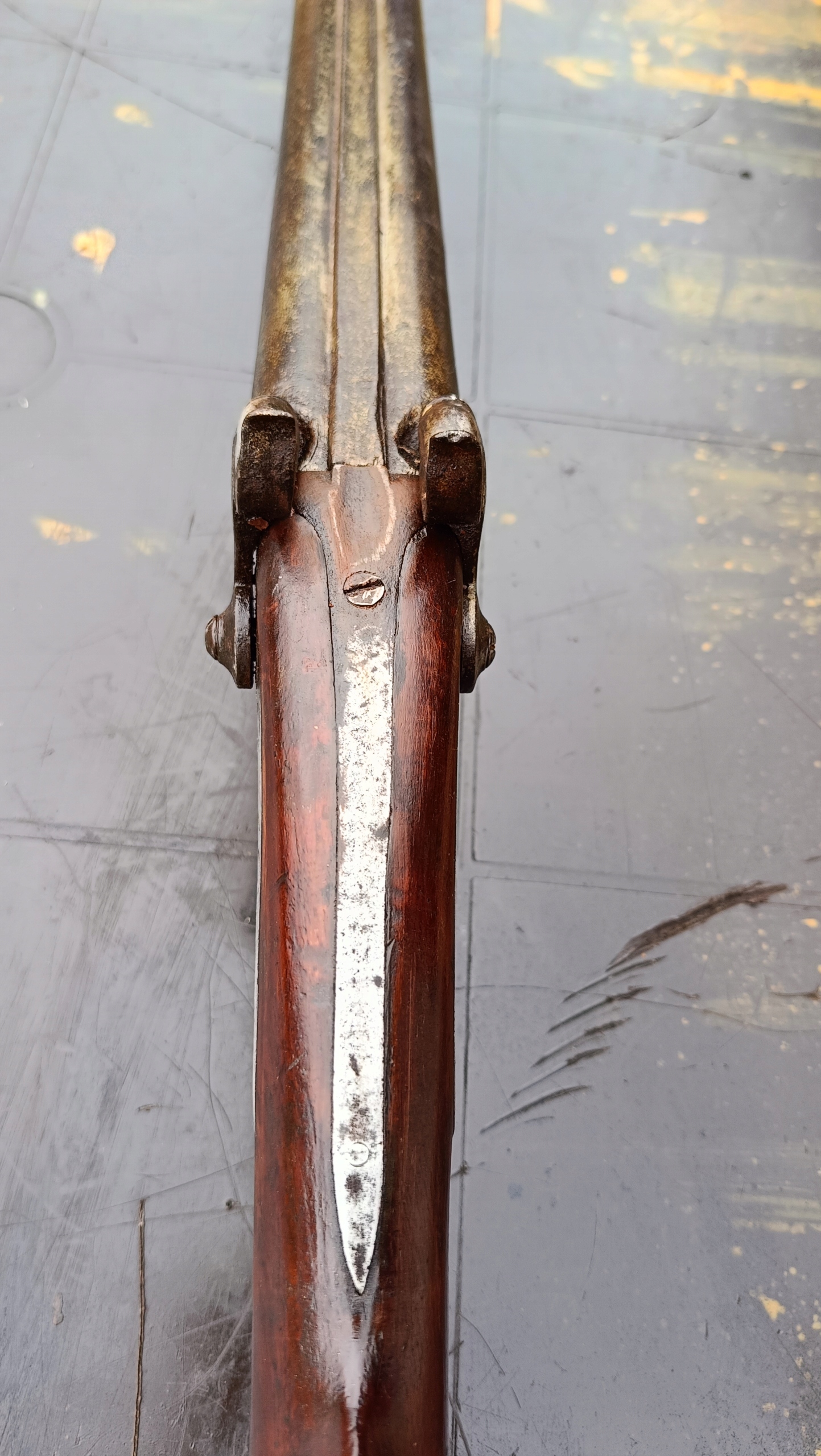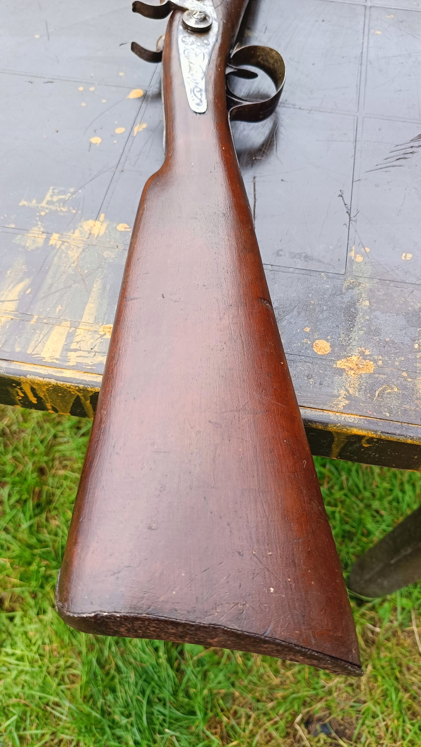 Загружается спереди. Вы можете произвести сухой выстрел. Спусковой крючок осуществляет запирание курка в два хода. Ствол в относительно хорошем состоянии – мушка отсутствует, возможно, ствол был укорочен. Дерево в хорошем состоянии. Камины необходимо заменить.
