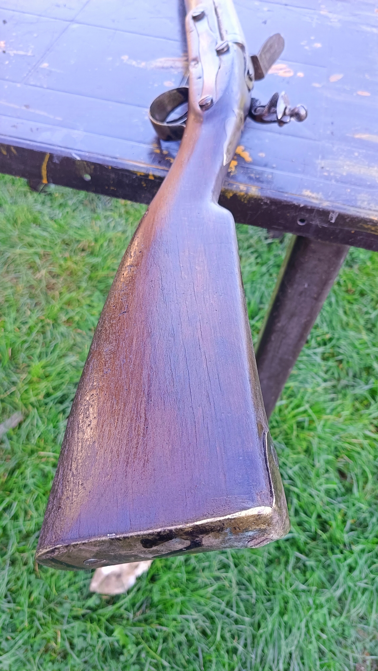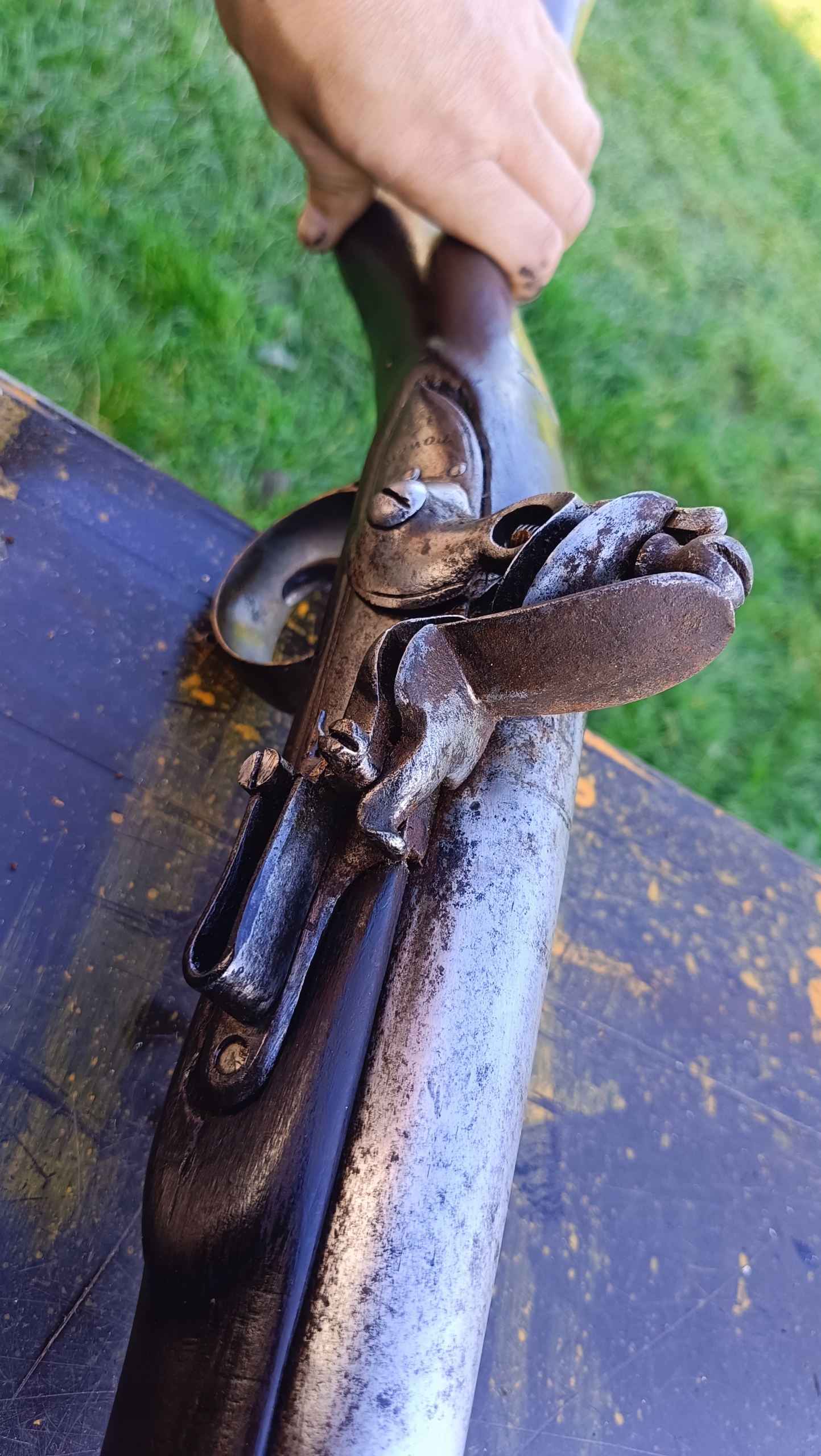 Привет всем. Продаю большое, тяжелое английское военное кремневое ружье с черным порохом производства - TOWER - Замок работает - нет. Дерево в относительно хорошем состоянии, следы старого короеда заметны только в начале подвоя. На крышке есть видимые крепления, но в целом она в относительно хорошем состоянии.