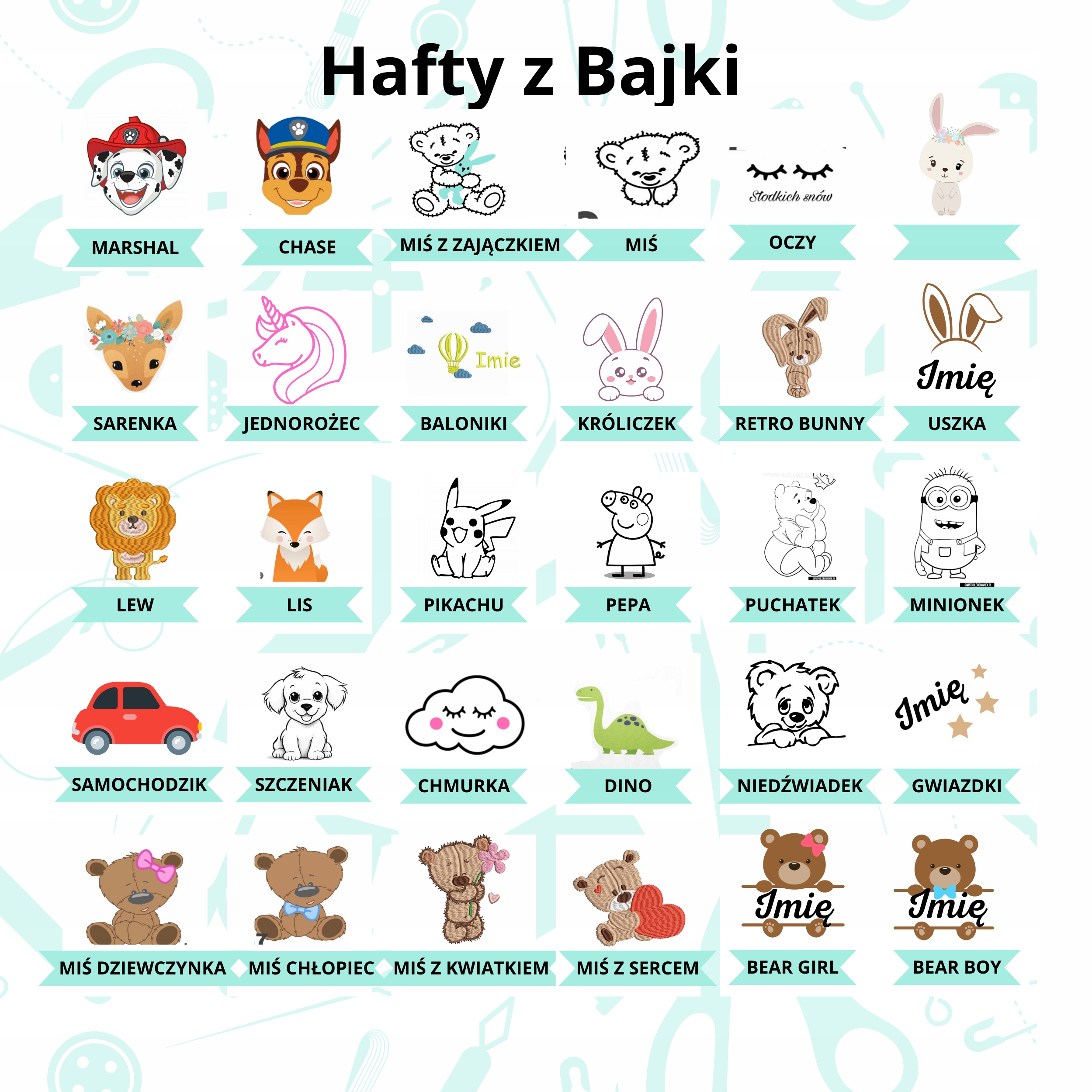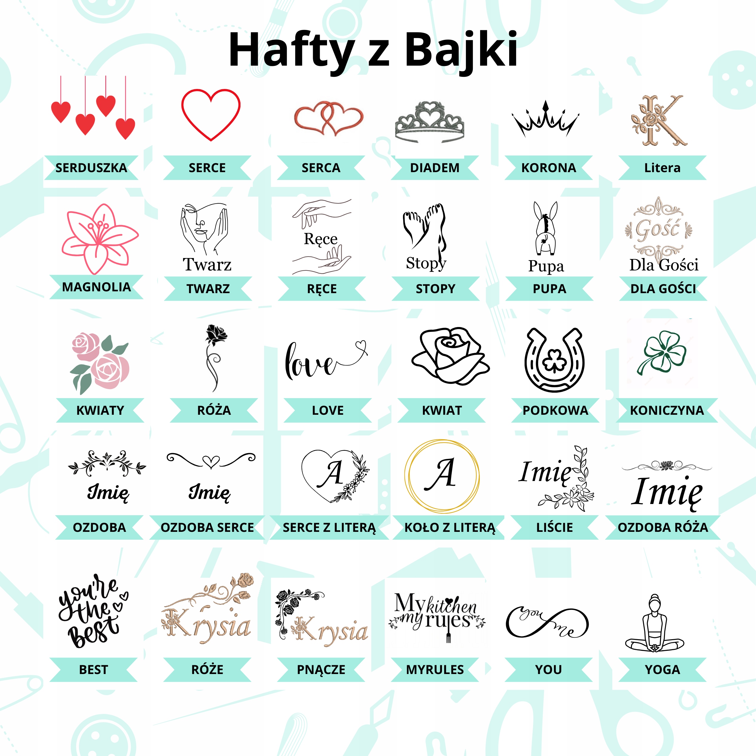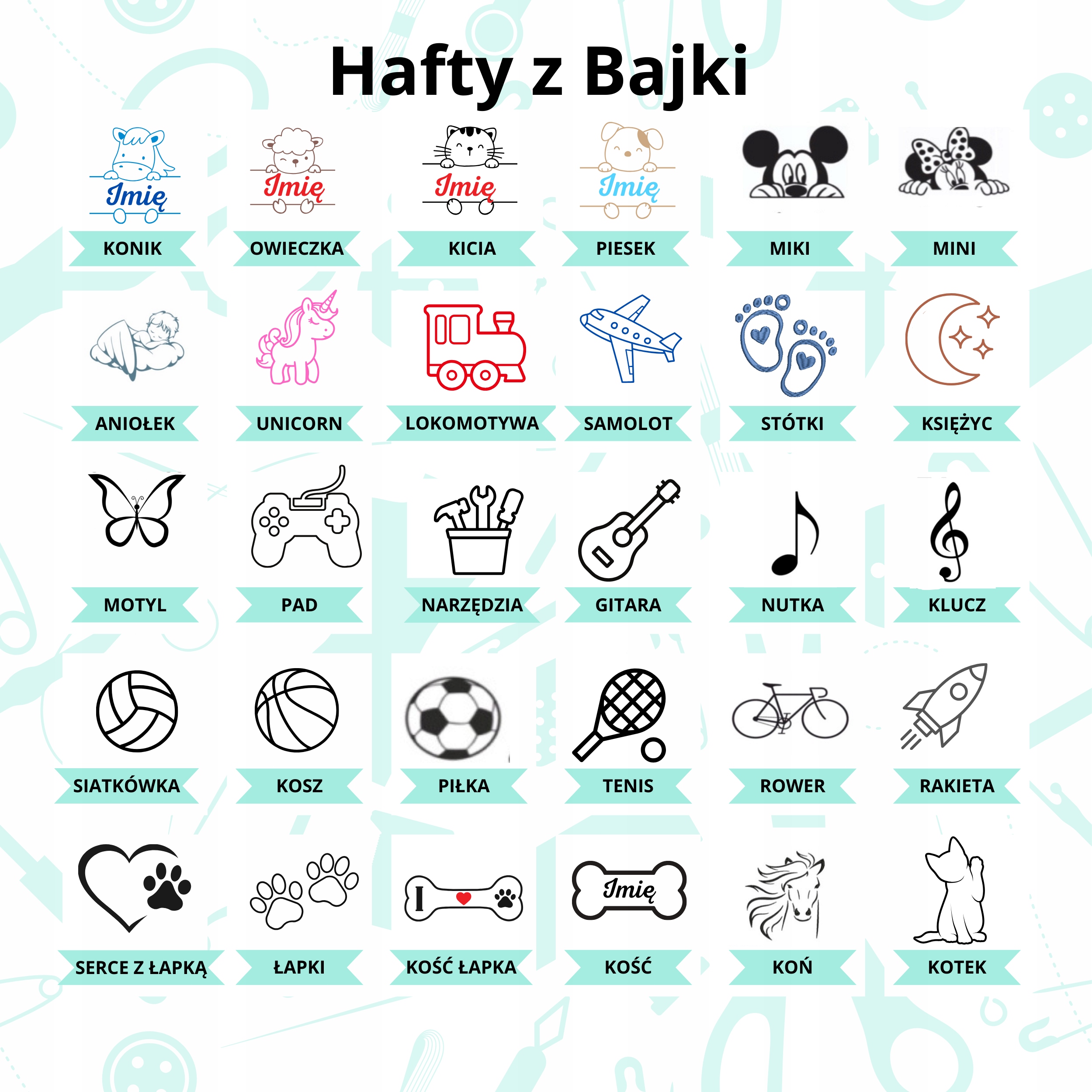 2. Выберите графику, имя и изображение или только имя (размер вышивки находится в пределах поля 20x20 см).