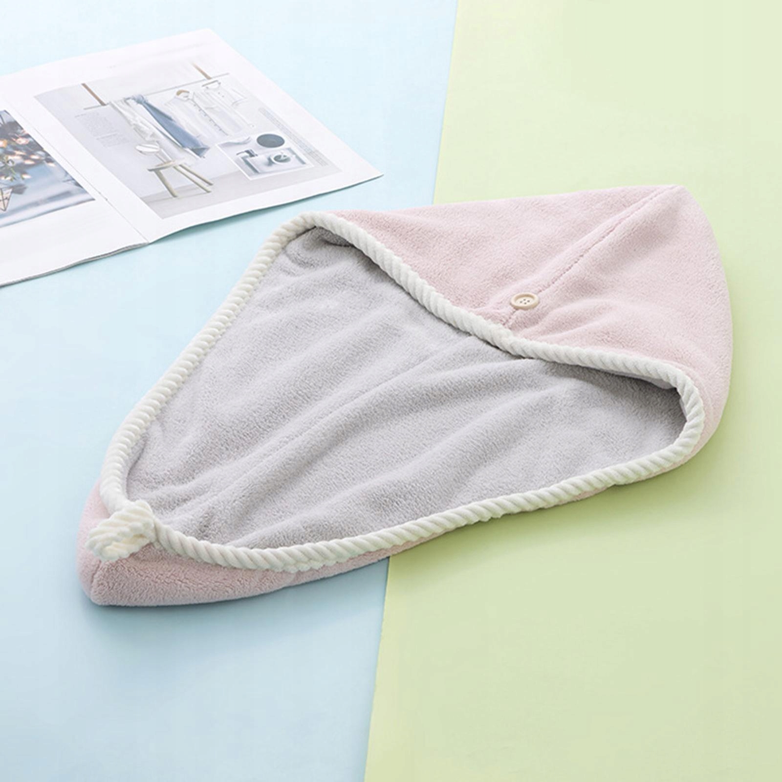 Полотенце для волос с пуговицами Тюрбан для волос из микрофибры Полотенце для волос женское Розовый и серый