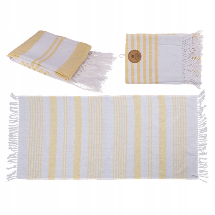 Полотенце для хаммама, белое с желтыми полосками, 80х170 см.