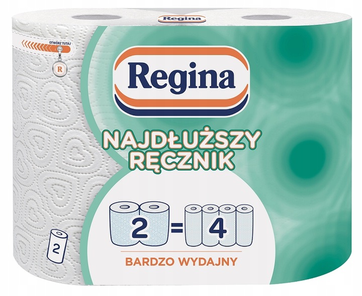 Самое длинное полотенце Regina — изделие, предназначенное для кухни. Очень эффективные рулоны, содержащие вдвое больше бумаги по сравнению со стандартными изделиями, идеально подходят для любых кухонных задач.
