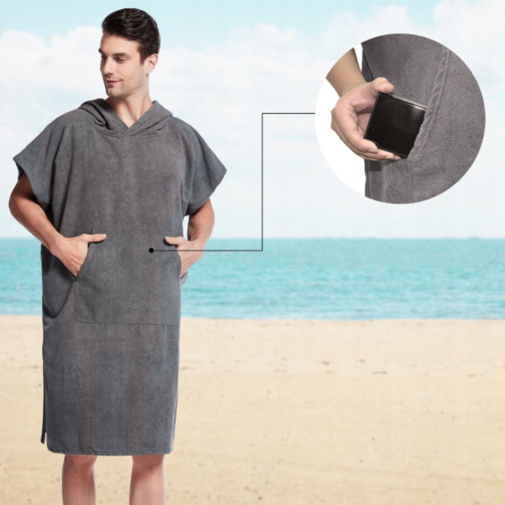 Пончо с серым капюшоном h2> 🏄♀ пляжные ребрышки для любителей водных видов спорта, это будет полезно не только летом во время серфинга, но и во время других водных мероприятий, h2> 🏄♀szbko и эффективно поглощает влагу, h2>