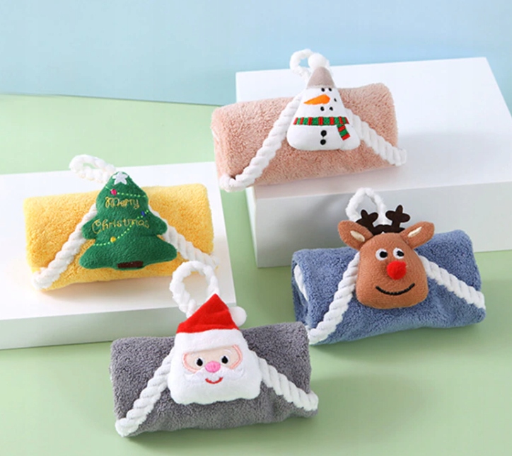 РОЖДЕСТВЕНСКОЕ ПОЛОТЕНЦЕ детское, для рук и рта, СЕРЫЙ САНТА, Рождество