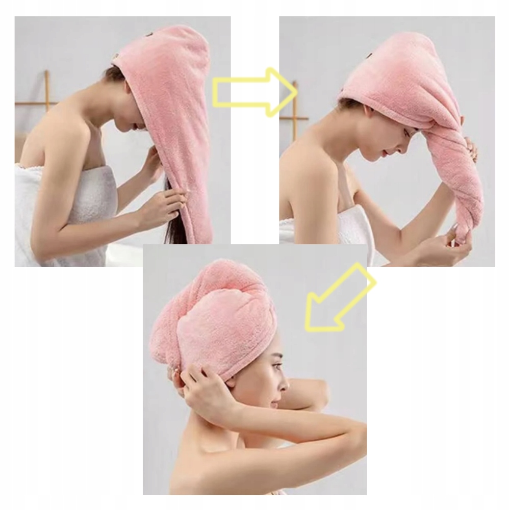 Они хорошо и надежно держатся на голове. Форма полотенец разработана таким образом, чтобы их можно было легко надевать на волосы. У них есть практичная кнопка, обеспечивающая устойчивость.