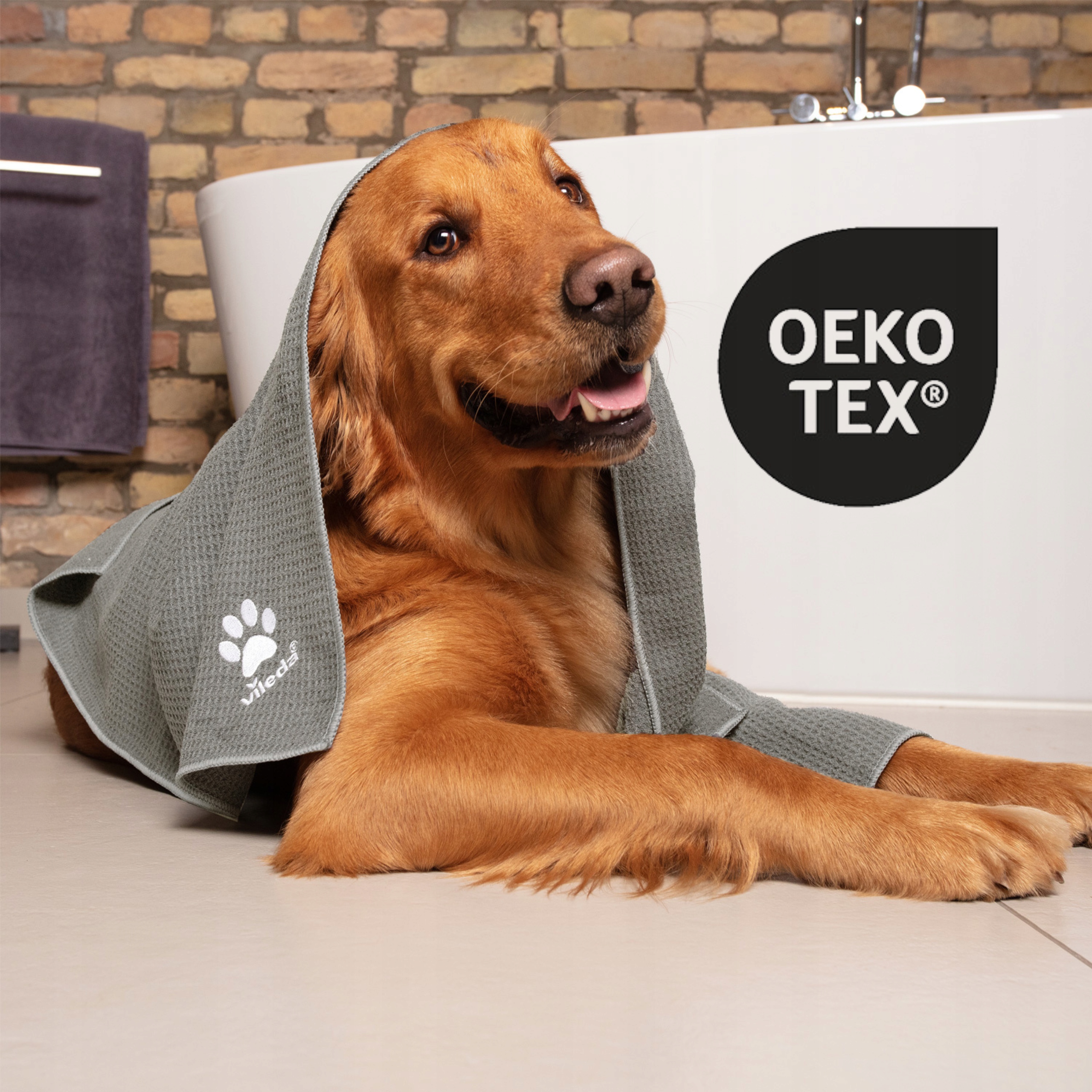 Полотенце, изготовлено из микрофибры Vileda pet pro, в мигании глазного стока и удаляет грязь из четвероногих. вымыть в стиральной машине при температуре до 60 ° C.