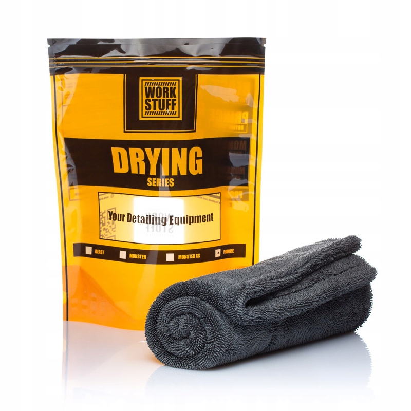 WORK STUFF Prince занимает первое место в категории полотенец для сушки тела. Большой размер (55х50см) позволяет удобно ориентироваться по красочной поверхности. Уникальный вес 1100 г/м² и высокая впитывающая способность позволяют высушить большой автомобиль, не оставив ни капли воды. Полотенце изготовлено очень аккуратно, что снижает риск поцарапать краску. Настоящий номер один среди полотенец из микрофибры. Из-за его мягкости и пушистости мы часто задаемся вопросом, как он будет смотреться в ванной :)