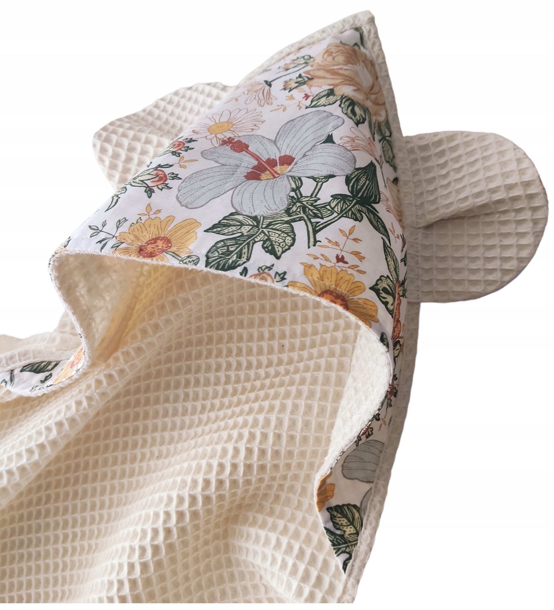Покрывало прекрасно подойдет после домашней ванны, а благодаря тому, что полотенце имеет капюшон, мы с удовольствием они также водят его на пляж или в бассейн. Его также можно использовать как пеленку или одеяло.