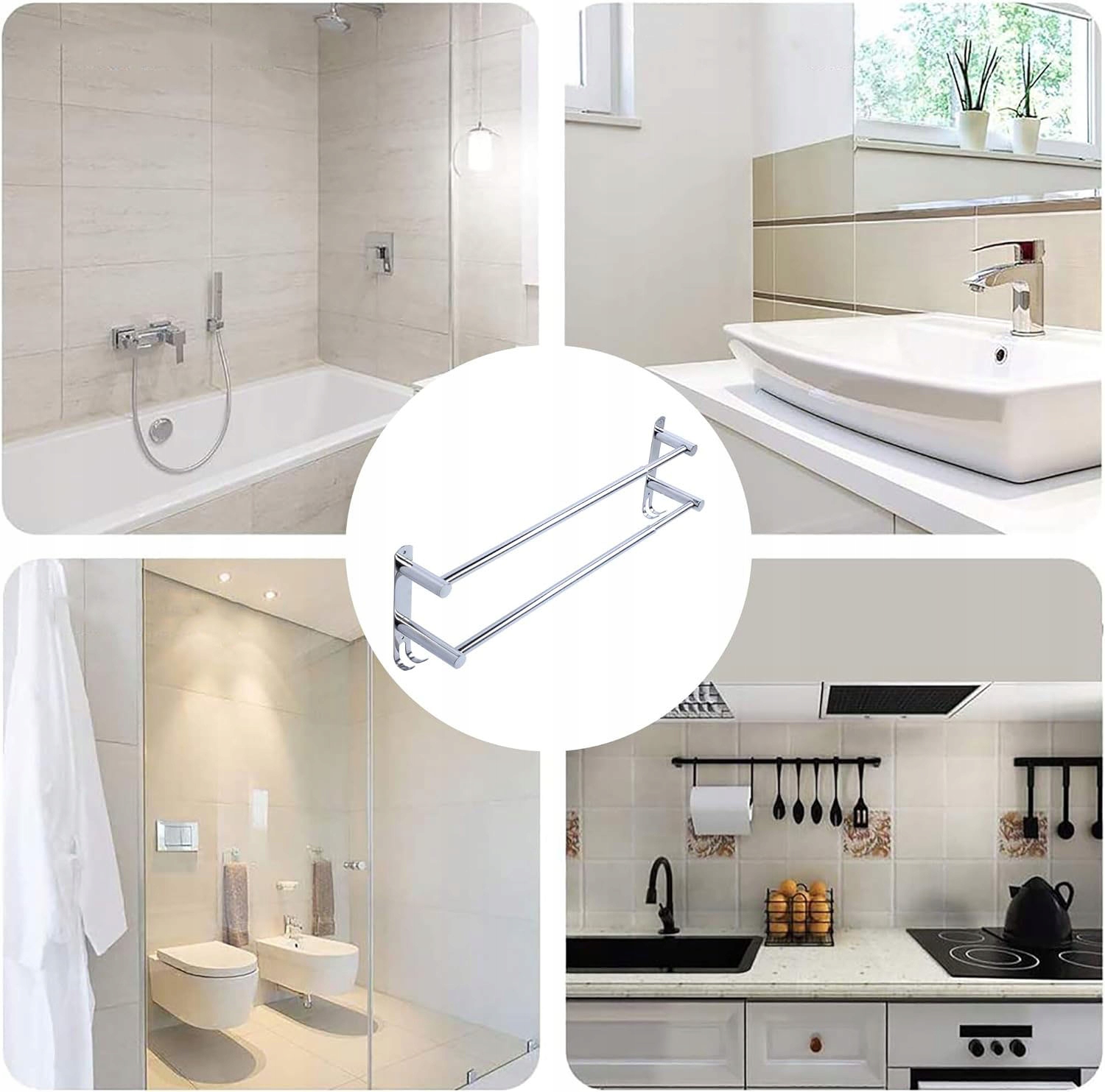 ✅✅ Стержень для полотенца: регулируемая вешалка для полотенец длиной 50-90 см. Это может быть развернуто, если это необходимо, это очень полезно и практично. 2 дополнительные крючки для подвесной ванной или кухонной аксессуары. Устойчив к воде и масле. Длился во влажной среде. Большая грузоподъемность, гладкие края и полированные. Кроме того, он предотвращает лучшее количество полотенца и обеспечивает достаточно места для хранения, благодаря которому оно может удовлетворить потребности всей семьи. стена. Легко установить, просто, но практично. Болты в наборе. После использования просто очистите вешалку для полотенца мягкой хлопковой тканью. Дома или отеля и офиса, где требуется вешалка для полотенец