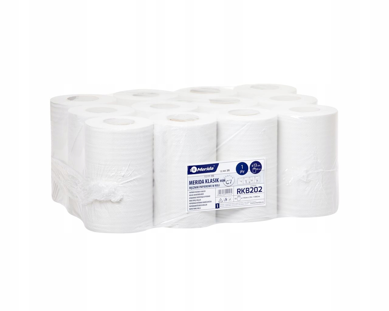 РУЛОННЫЕ БУМАЖНЫЕ ПОЛЕНЦА MERIDA KLASIK MINI БЕЛЫЕ ДИАМЕТР 13 СМ. ДЛИНА 116 М.
