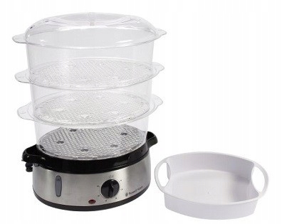 - конструкция: основание из нержавеющей стали, поддон для сбора капель, 3 контейнера, контейнер для варки риса