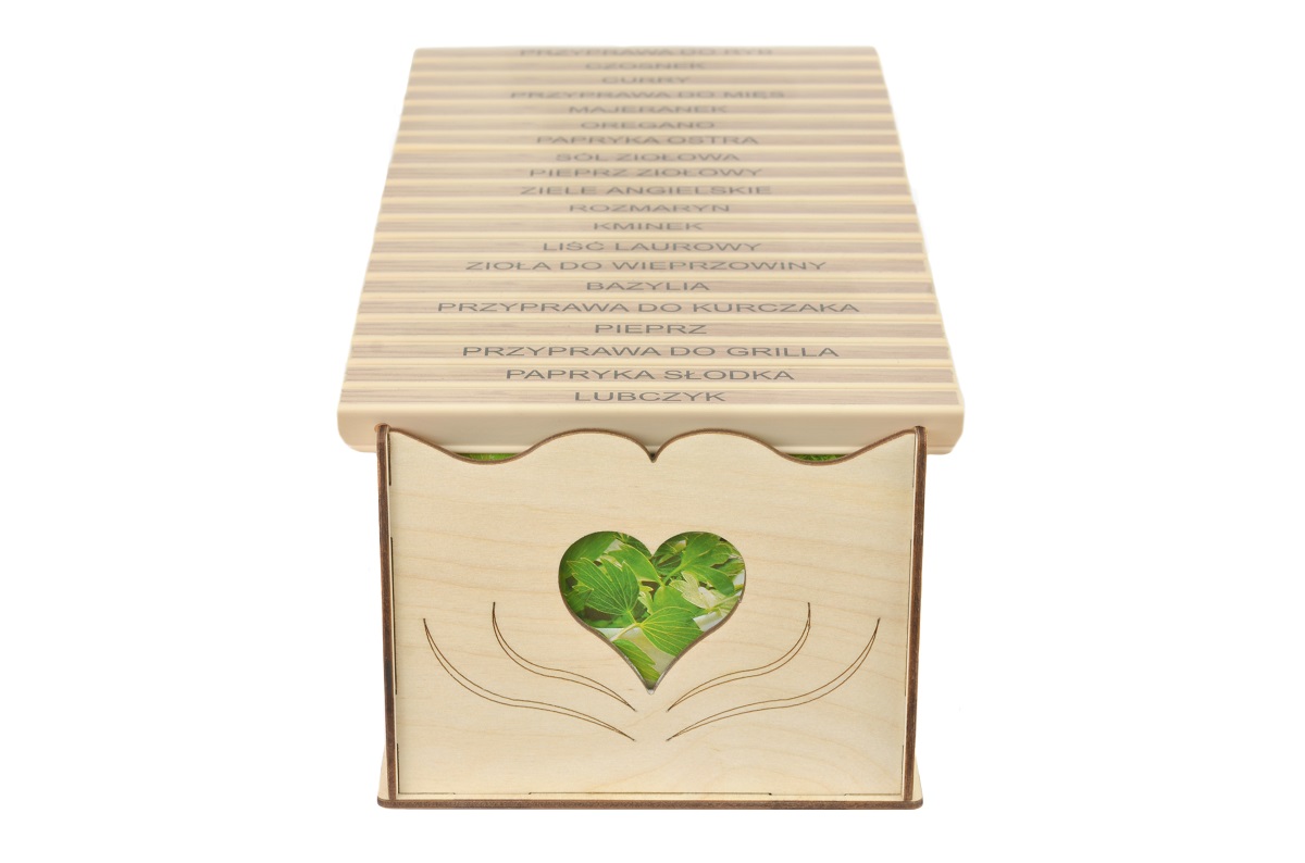 - ящик для специй — фанерный ящик с ручками в форме сердца.