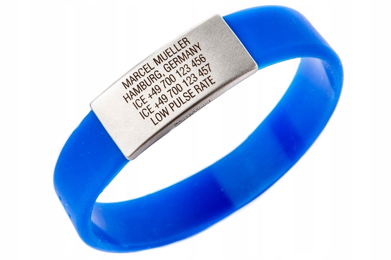 На браслете ICEstripe Slim в вашем распоряжении 5 строк текста (если вам нужно больше места, мы предлагаем выбрать браслет ICEstripe Elite), в которые вы можете включить самую важную информацию о себе. Данные будут выгравированы лазером на значке из нержавеющей стали.