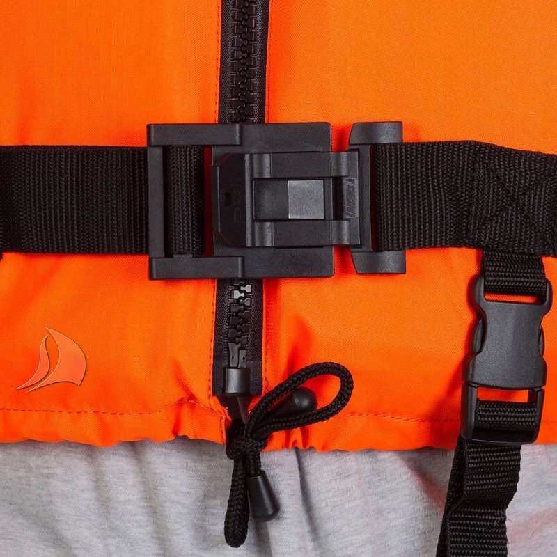 Для повышения безопасности (предотвращения скольжения) используется паховый ремень жилет), застежка-молния и пряжка. Он удобный и легкий, покрыт прочным нейлоном. Имеет светоотражающее покрытие (SOLAS) и незабивающийся свисток для вызова помощи. Высокое качество. Предназначен для использования в открытом море.