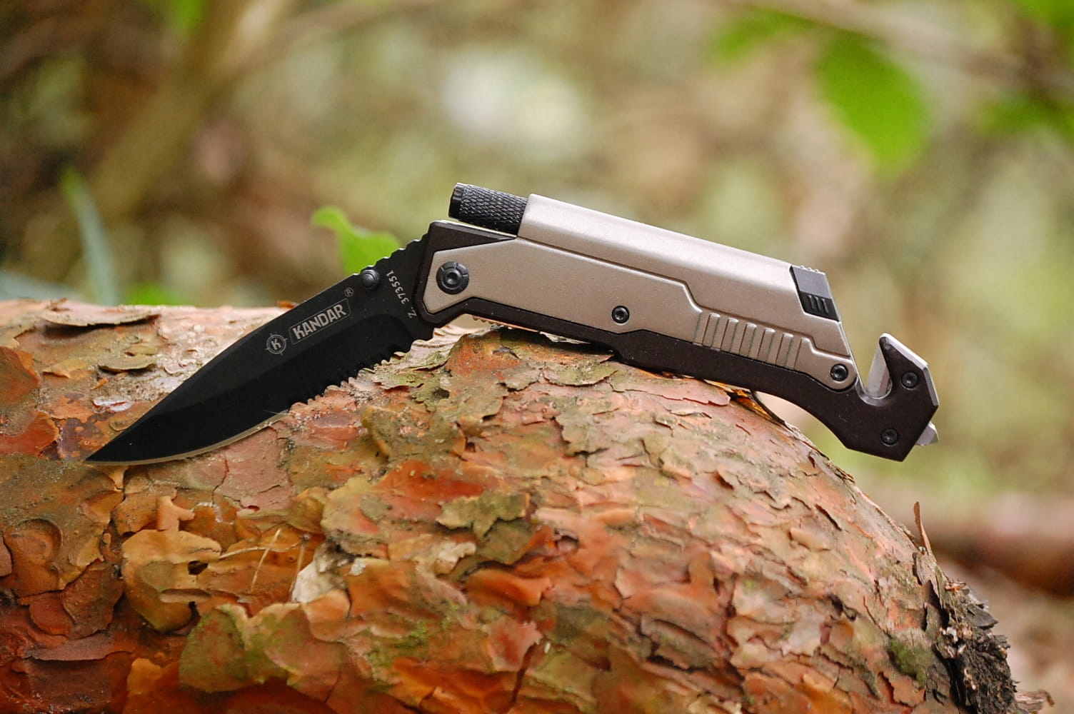 Складной спасательный нож Kandar JM-K16 — отличное решение для силовых структур и людей, передвигающихся в городских джунглях. Данная модель представляет собой удачное сочетание функциональности с оригинальной линейкой, отвечающей эстетическим вкусам пользователей. Зазубренное лезвие специальной формы приспособлено для разрезания веревок.
