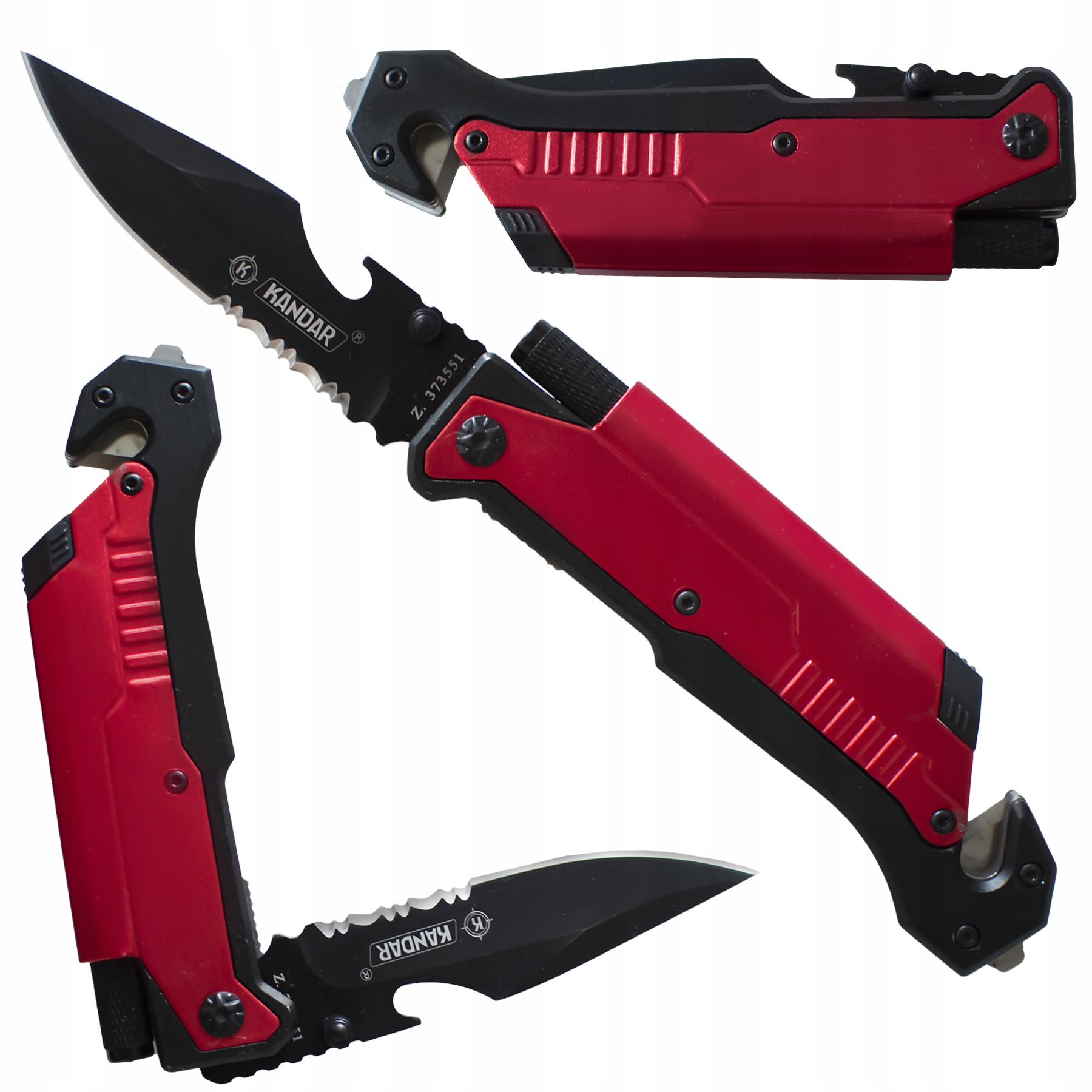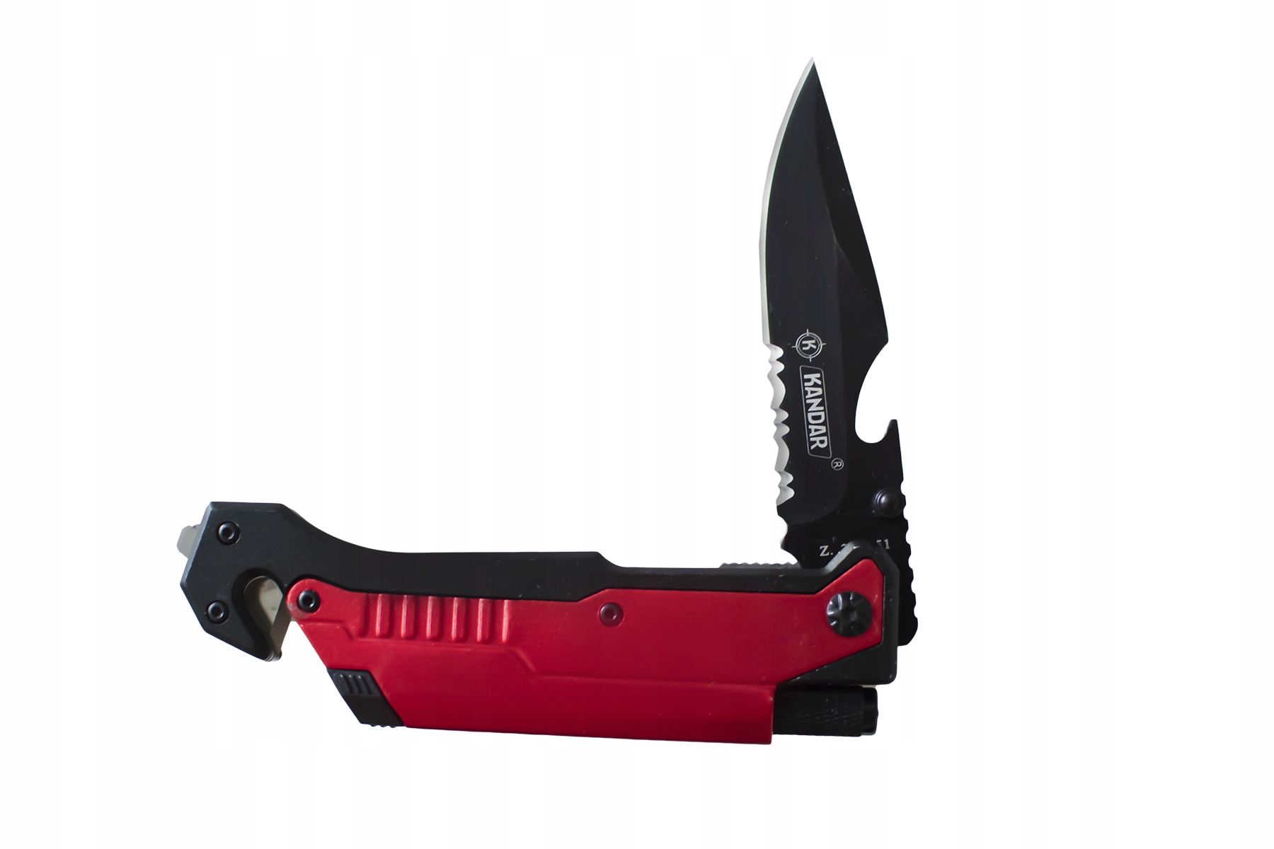 Складной спасательный нож Kandar JM-K16 — отличное решение для силовых структур и людей, передвигающихся в городских джунглях. Данная модель представляет собой удачное сочетание функциональности с оригинальной линейкой, отвечающей эстетическим вкусам пользователей. Зазубренное лезвие специальной формы приспособлено для разрезания веревок.