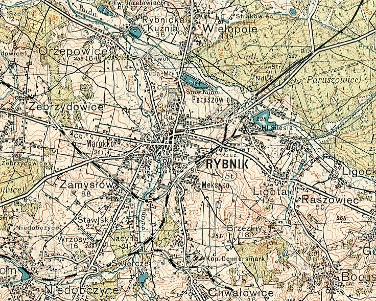 военная карта :: rybnik ::: Оригинальная довоенная военная, цвет, складываемая карта