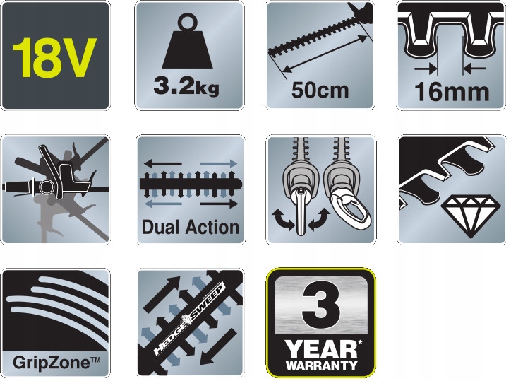 Лезвие длиной 50 см с зазором между зубьями 16 мм облегчает обрезку ветвей