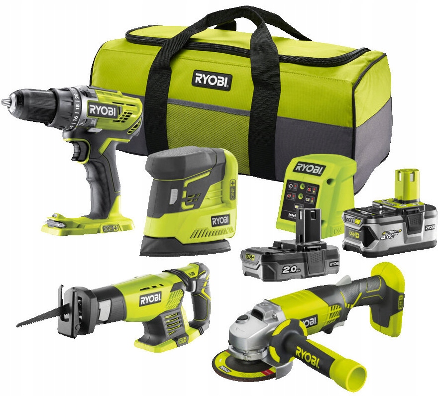 Ryobi Combo Set Sinner Piła Outdriver + 18V 4AH + 2AH Bag 8 штук
