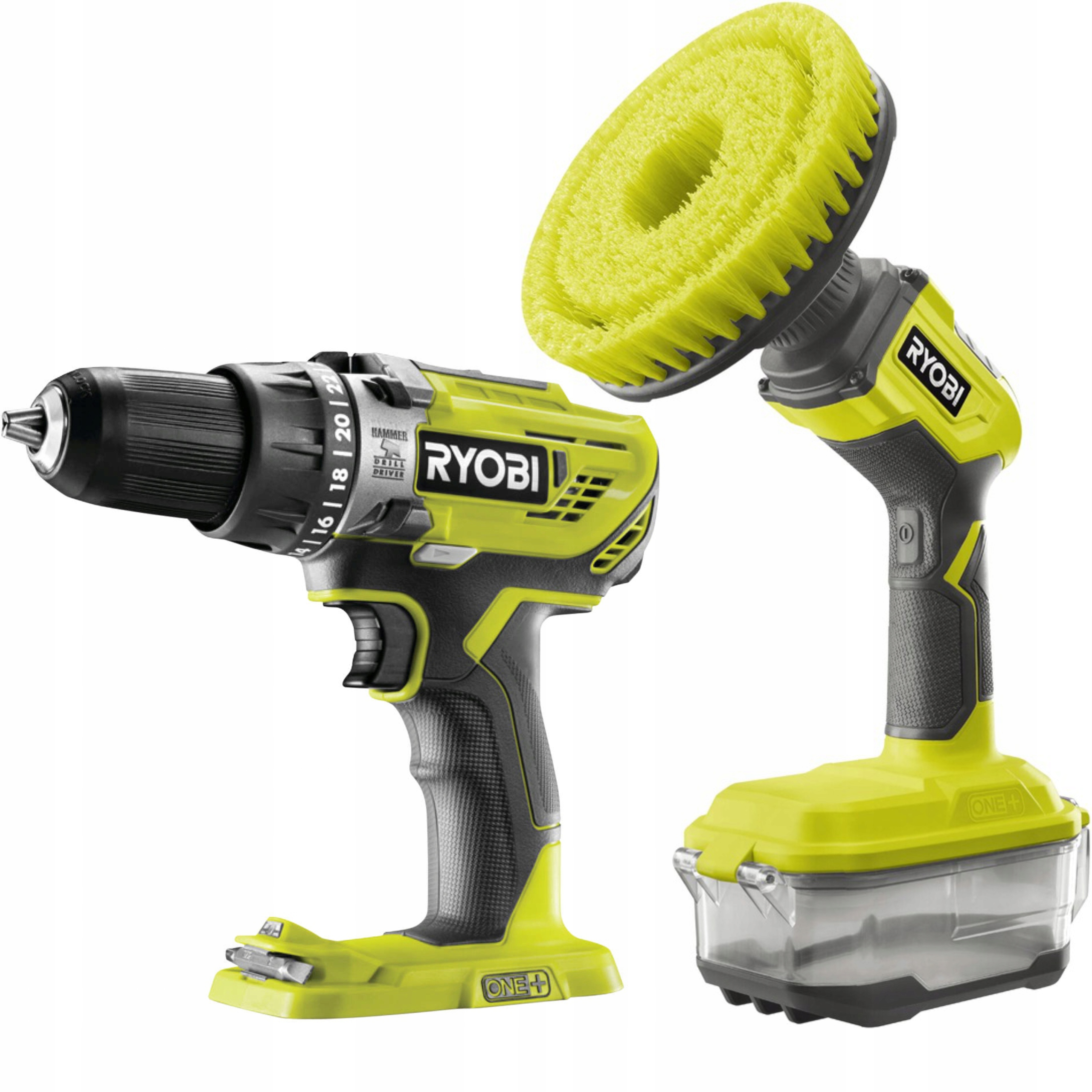 RYOBI ДРиль, УДАРНА ВИКРУТКА R18PD3 + ОБРАТНА ЩІТКА ДЛЯ МИЙКИ R18CPS 18V