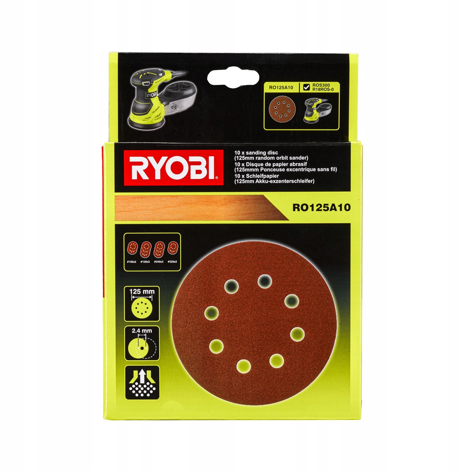 НАБОР RYOBI ИЗ 10 ШЛИФОВАЛЬНОЙ БУМАГИ RO125A10 125MM 5132002608
