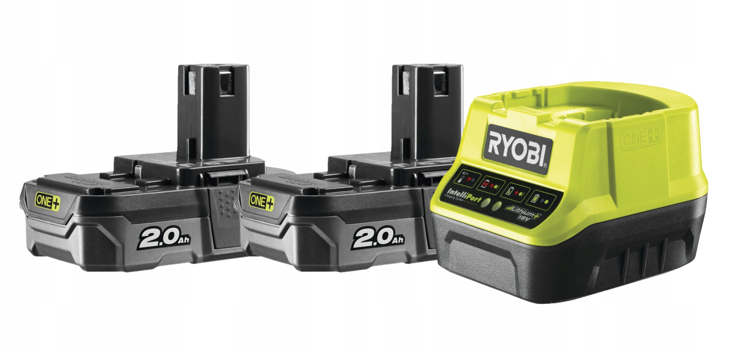 В КОМПЛЕКТЕ ДВУХ АККУМУЛЯТОРОВ 2,0 АЧ, ЗАРЯДНОЕ УСТРОЙСТВО,