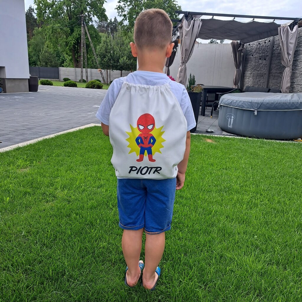 Классический, универсальный сумка, рюкзак в белом/экру с белыми струнами и выделенным вашим печати.