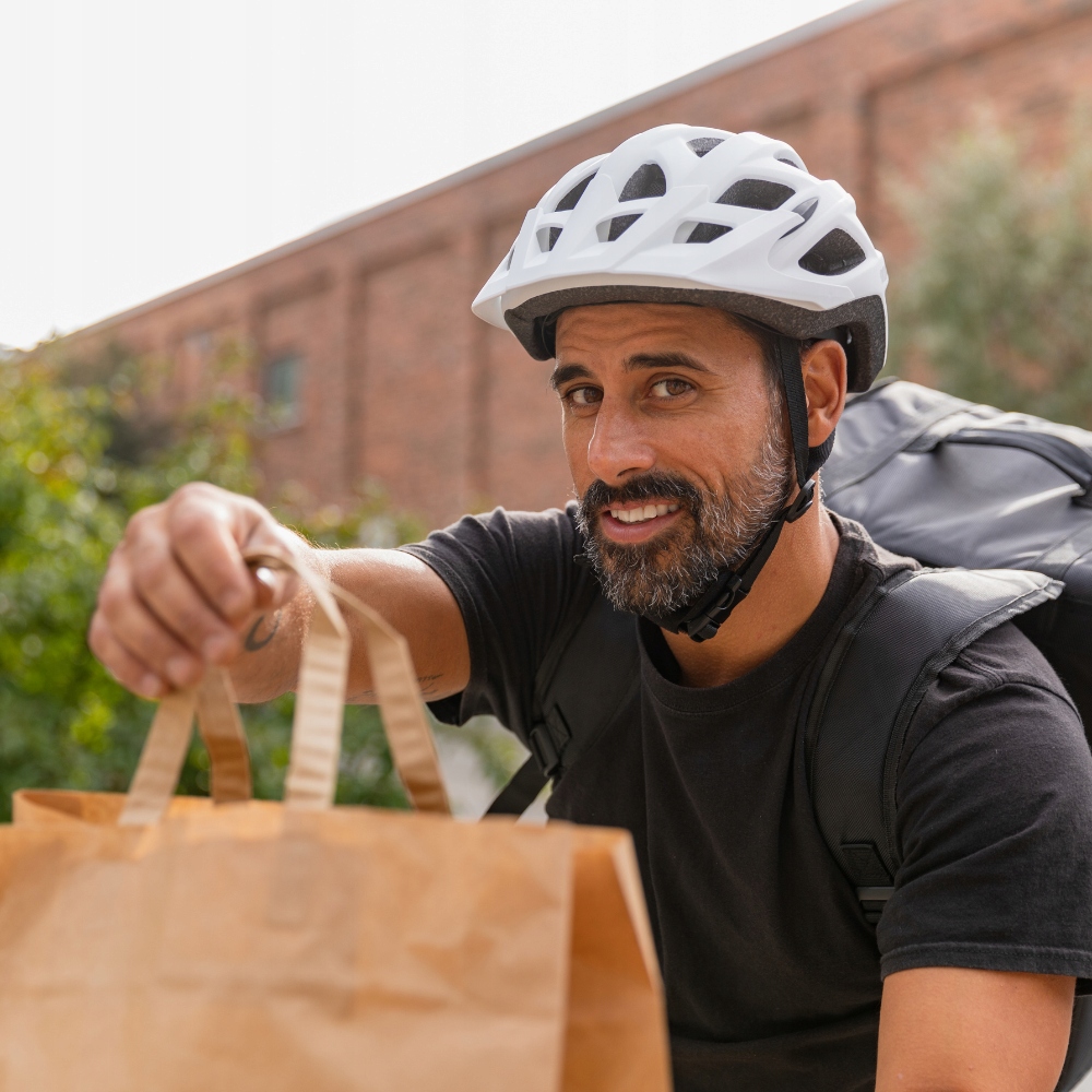 Легкая сумка для транспортировки пищевых продуктов: прочная, но легкая, расположена на сзади водителя.