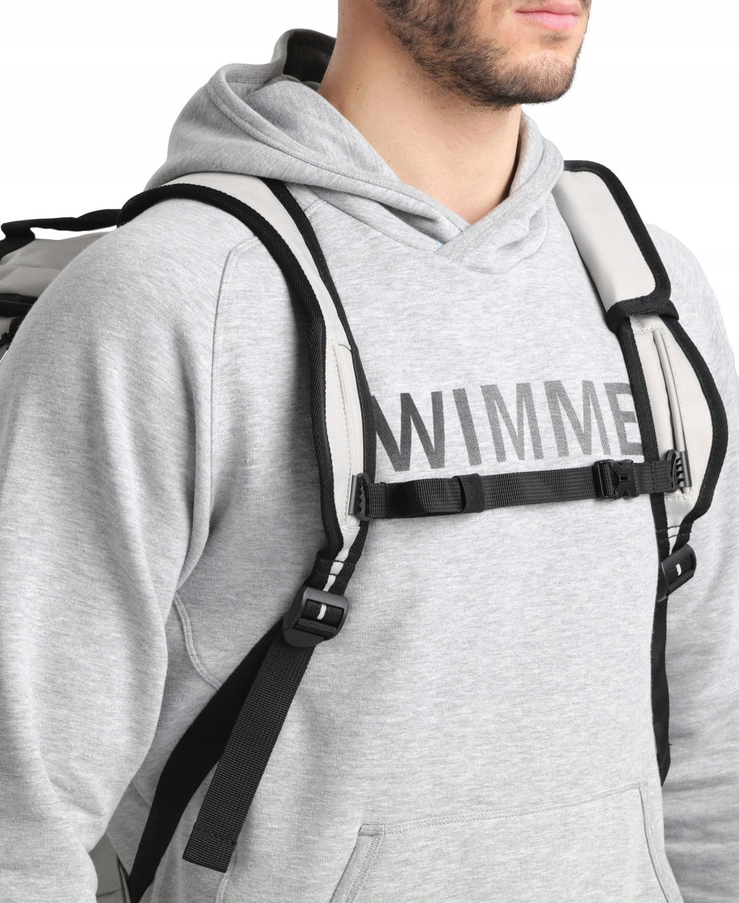 Большое основное отделение, глубокие боковые карманы для мокрой одежды и обуви, несколько передних карманов, карабин для подвешивания рюкзака.
