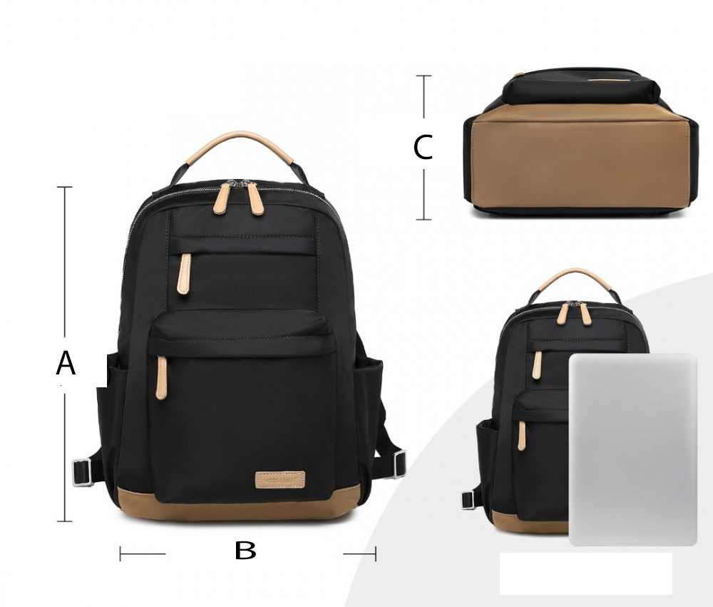 ✔ имеет размеры: (a) 40 × (б) 30 × (c) 15 см), с последним значением (глубиной), он может увеличиваться в зависимости от кармаза Backpack.
