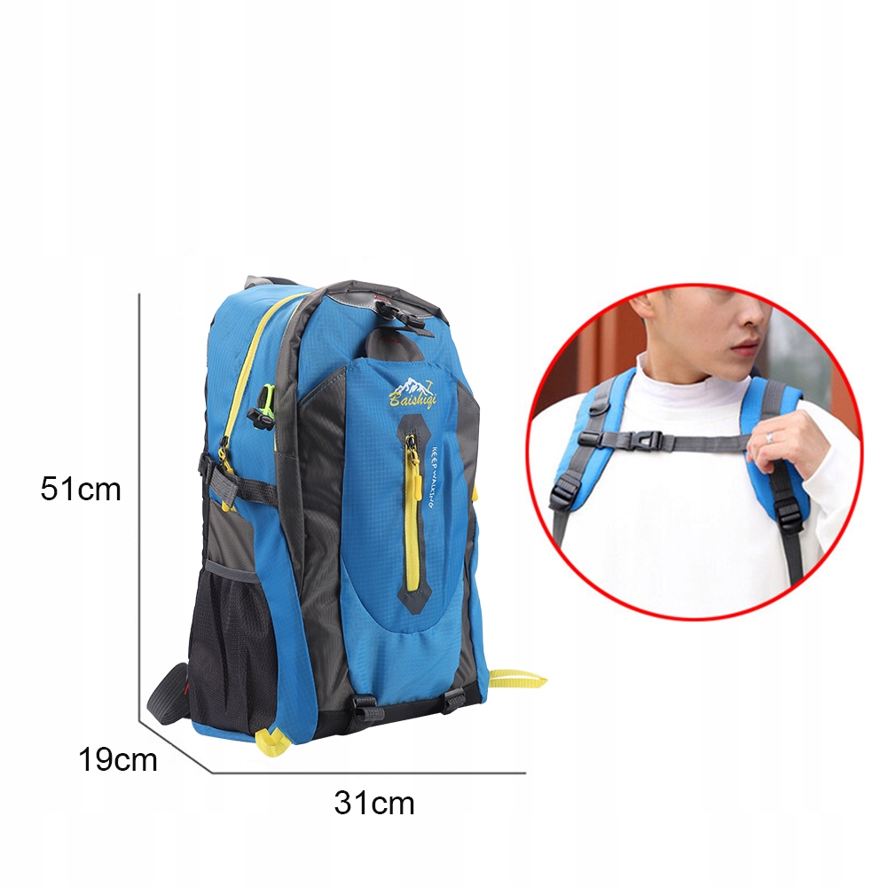 вентилируемая спинка на сетчатой подкладке и плечевые лямки обеспечивают циркуляцию воздуха между спиной и рюкзак, удобный во время длительных походов, 2 регулируемых ремня и 2 компрессионных ремня для подвешивания трекинговых палок, штатива, палатки, спального мешка, другого снаряжения и усилений.