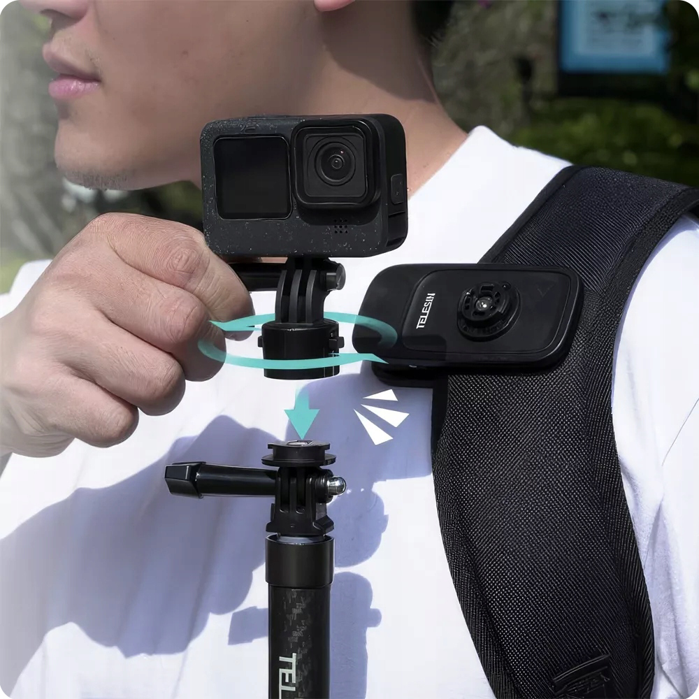 ✔️ Ускорьте процесс установки камеры с помощью магнитного зажима Telesin Go-Quick II с помощью системы GoPro fast разъем.