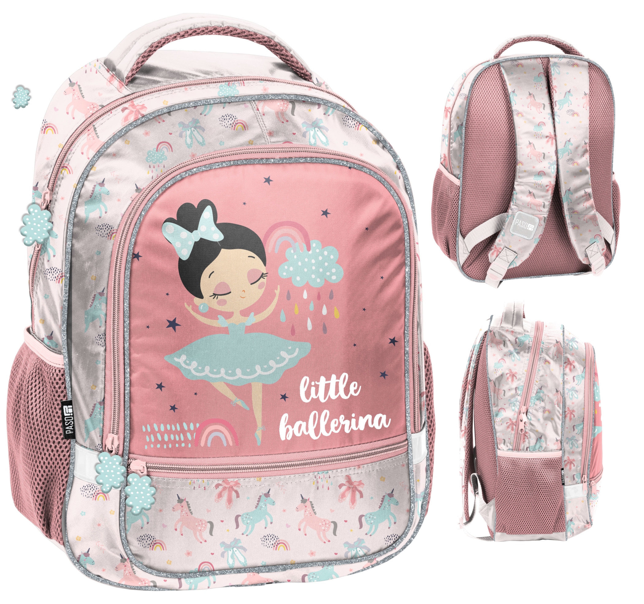 Самый модный школьный рюкзак этого сезона с балериной из последней коллекции Paso. Рюкзак легкий и вместительный, размер подходит для учеников начальных классов 1-3. Оригинальныерозовые цвета создают гармоничное целое и радуют маленьких покупателей. Изготовлен из высококачественных, прочных, водонепроницаемых материалов. Вот милый розовый рюкзак для модной девушки. Красивый приглушенный розовый цвет рюкзака с изображением Balerina — идеальное сочетание. Танцевальный элемент в одежде и аксессуарах – один из главных трендов этого сезона.
