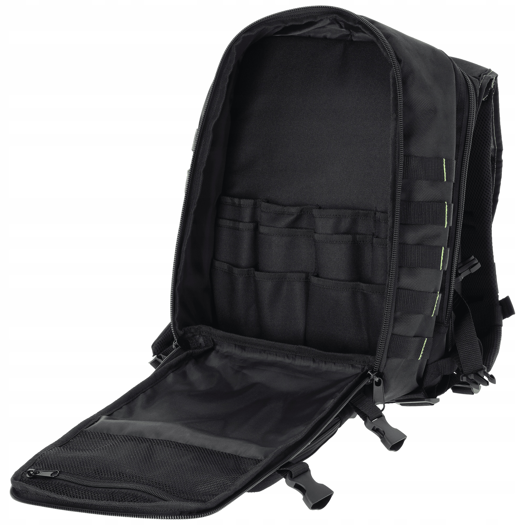 Рюкзак для инструментов «PNP28» — профессиональный аксессуар, полезный при монтажных и сервисных работах. Изготовлен из прочной и дополнительно армированной полиэфирной ткани. Он устойчив к механическим повреждениям и легко чистится. Он разделен на 4 внешних кармана, что позволяет легко разделить необходимые предметы. Внутри имеется дополнительный карман для ноутбука и 18 небольших отделений для хранения рабочих принадлежностей. Рюкзак не только функционален, но и удобен для пользователя. В верхней части имеется прочная ручка для переноски рюкзака в руке. Профилированные ремни эргономичной формы имеют точную систему регулировки. На комфорт использования рюкзака влияет дополнительный регулируемый нагрудный ремень и система мягких дышащих подушек на спине. Светоотражающие элементы обеспечивают лучшую видимость в сумерках и повышают безопасность пользователя.