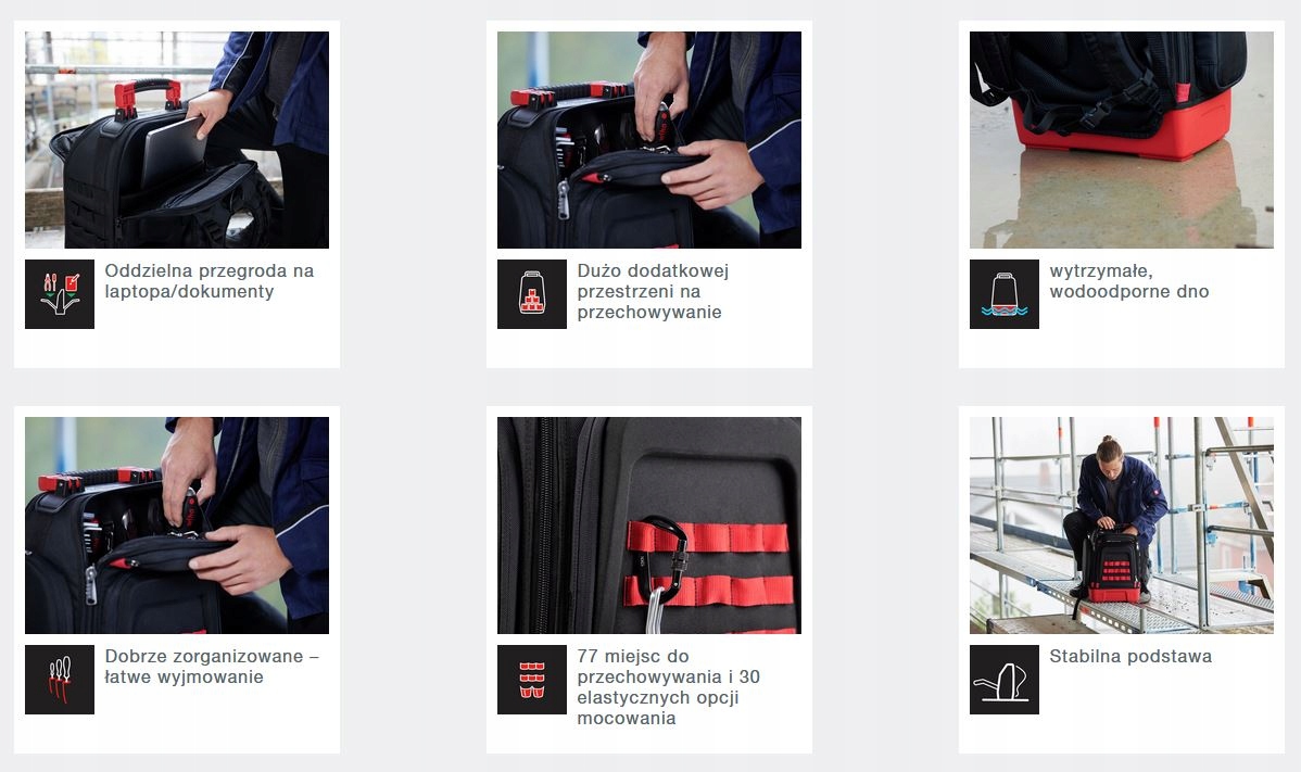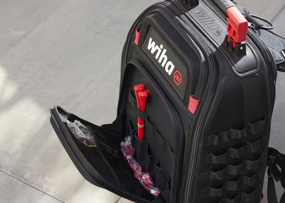 У кого заняты руки, тому нужны две свободные руки. Рюкзак для инструментов Wiha является идеальным решением для монтажников и благодаря своей запатентованной конструкции обеспечивает неограниченную свободу. Продуманная система отделений обеспечивает четкую организацию и легкое извлечение инструментов. Вам нужно всего лишь открыть 1/3 крышки рюкзака, чтобы получить быстрый доступ к инструментам. В общей сложности 77 мест для хранения и 30 гибких вариантов крепления позволяют настроить рюкзак в соответствии с вашими потребностями и оснастить его дополнительными инструментами и аксессуарами. Прочное дно рюкзака с устойчивым основанием предотвращает опрокидывание рюкзака при открытии. Кроме того, прочный материал, из которого изготовлено дно рюкзака, подходит для влажных и грязных условий работы. Рюкзак для инструментов – это не только мастерская для работы в путешествии, но и мобильный офис. Отделение для ноутбука и документов обеспечивает безопасное и чистое хранение, эффективно отделяя их от инструментов. Комфортное ношение обеспечивается регулируемыми и дышащими элементами для переноски, а также прочной нескользящей ручкой. Рюкзак соответствует самым высоким стандартам качества благодаря внешнему слою из материала 1680D и использованию молний YKK. Он также имеет отдельные мягкие отделения для ценных вещей и предметов. Рюкзак оснащен набором Г-образных ключей из 10 предметов и набором бит из 14 предметов, семью эргономичными отвертками и небольшим компактным Stubby, который идеально подойдет для всех видов завинчивающих работ. Все работы, связанные с удержанием и разрезанием заготовки, будут облегчены с помощью комбинированных плоскогубцев, разводных плоскогубцев и мощных бокорезов. Слесарный молоток Wiha, рулетка и пять комбинированных ключей с храповым механизмом дополняют мобильное оборудование для монтажников. И, наконец, рюкзак можно адаптировать под индивидуальные нужды благодаря универсальной системе Molle. В Интернете можно найти многочисленные аксессуары, которые крепятся к практичным петлям для ремня и позволяют дополнить и расширить рюкзак (в комплект они не входят). Благодаря профессиональному рюкзаку для инструментов и набору высококачественных инструментов Wiha все будет под рукой всегда и везде!