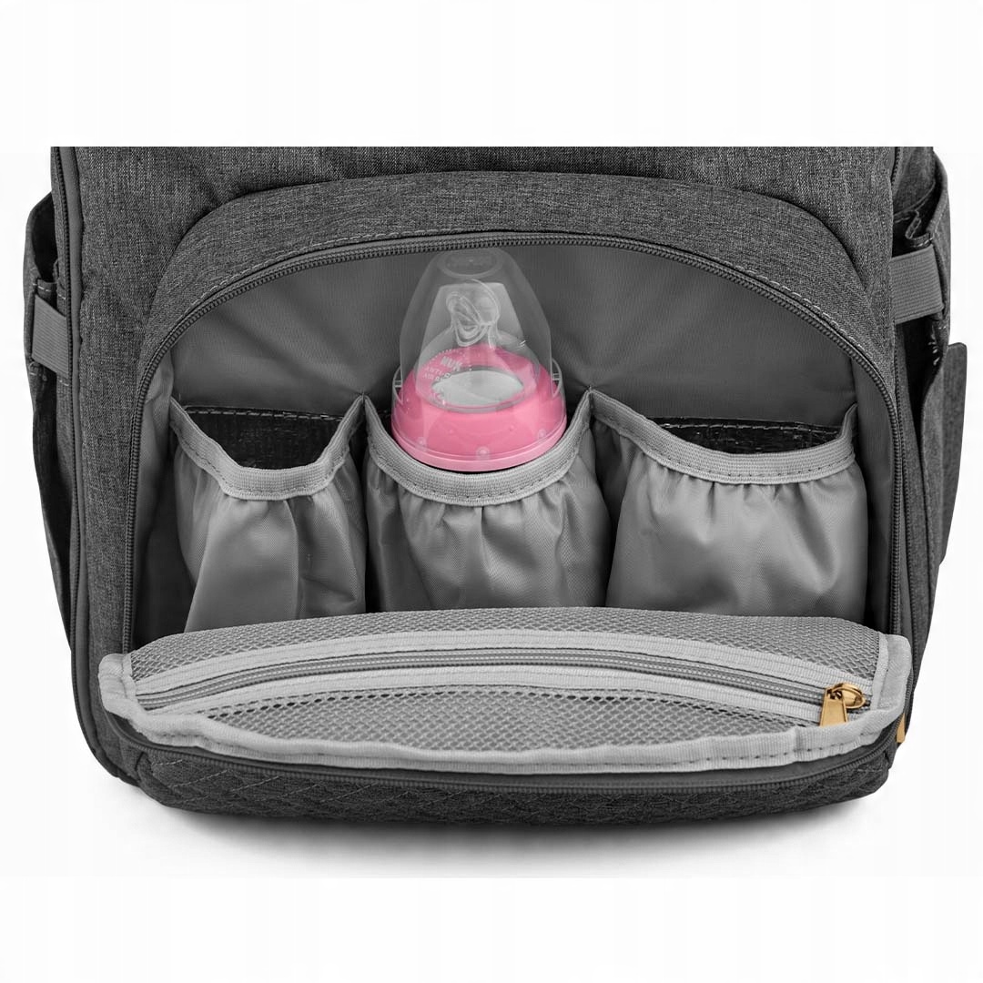A специальный термокарман на передней части рюкзака сохранит бутылочки при нужной температуре, а два боковых кармана позволят хранить влажные салфетки, бутылку с водой или зонтик.
