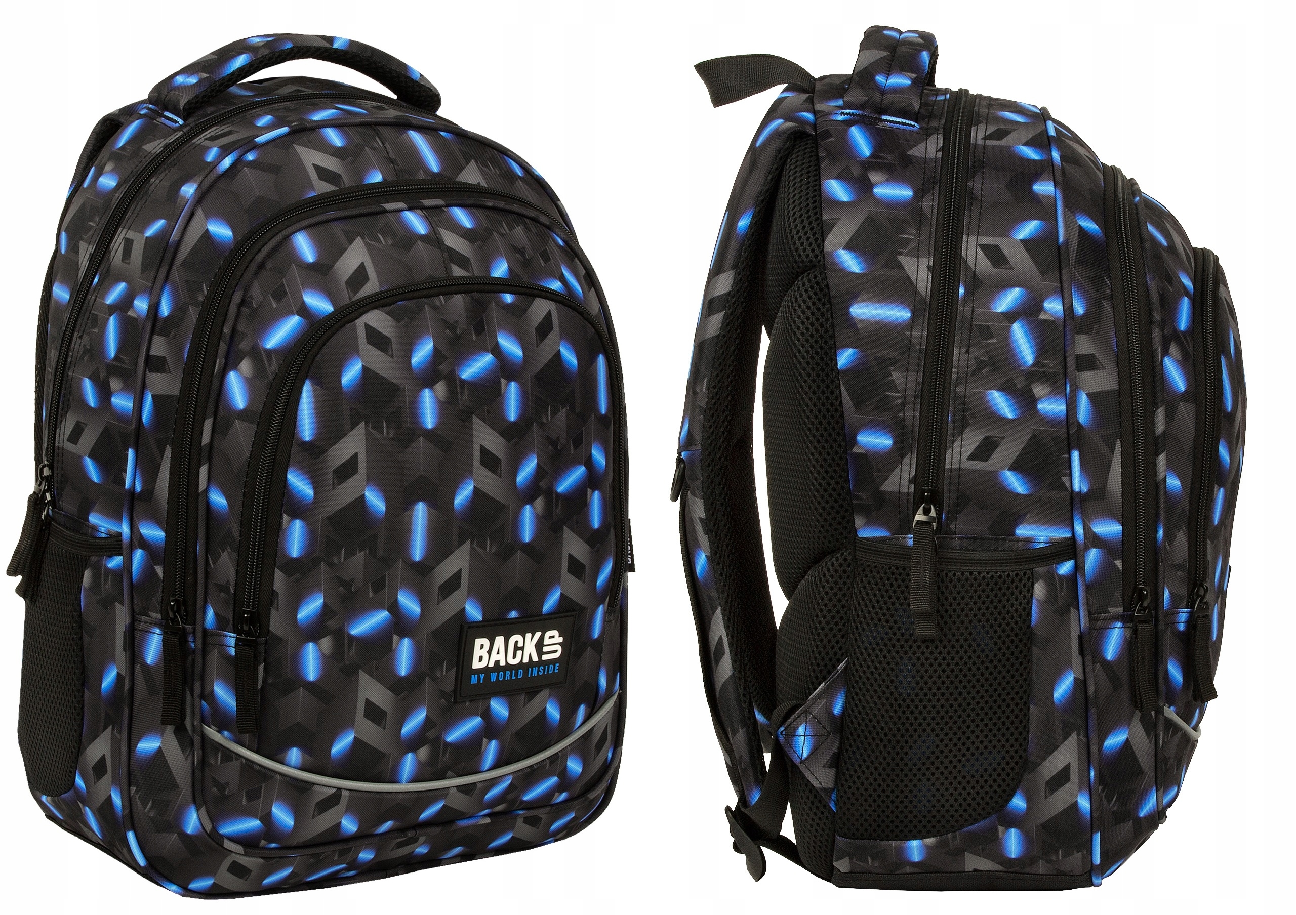 головоломка, которая втягивается в фантастический мир. Графитные фигуры в самых эталонных конфигурациях украшены неоново-голубыми платками, освещая путь к цели. Этот интенсивный цветовой элемент является глазом. Загадочное выражение углублено черными молниями и замками. Это молодежный рюкзак для настоящих любителей головоломок и элегантного минимализма.