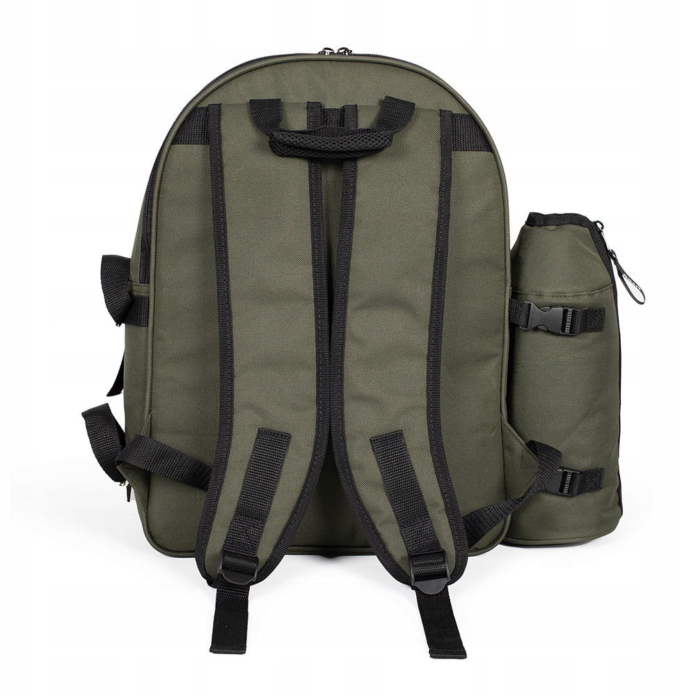 Рюкзак для пикника (хаки) со снаряжением на 4 человека, местом для хранения продуктов размером 43х28х8 см, боковым съемным держателем для бутылок.
