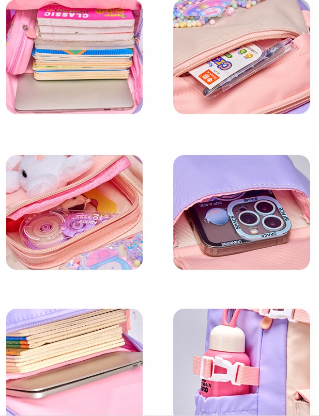 Этот детский рюкзак - легкий, мягкий и стильный, доступный в красочных цветах, таких как фиолетовый и синий, и благодаря очаровательным декорациям он выглядит особенным. Размеры имеют высоту 45 см, шириной 32 см и толщиной 17 см, то есть идеальный размер, так что ваш ребенок находится в центре внимания, независимо от того, ходит ли он в школу или покидает дом.