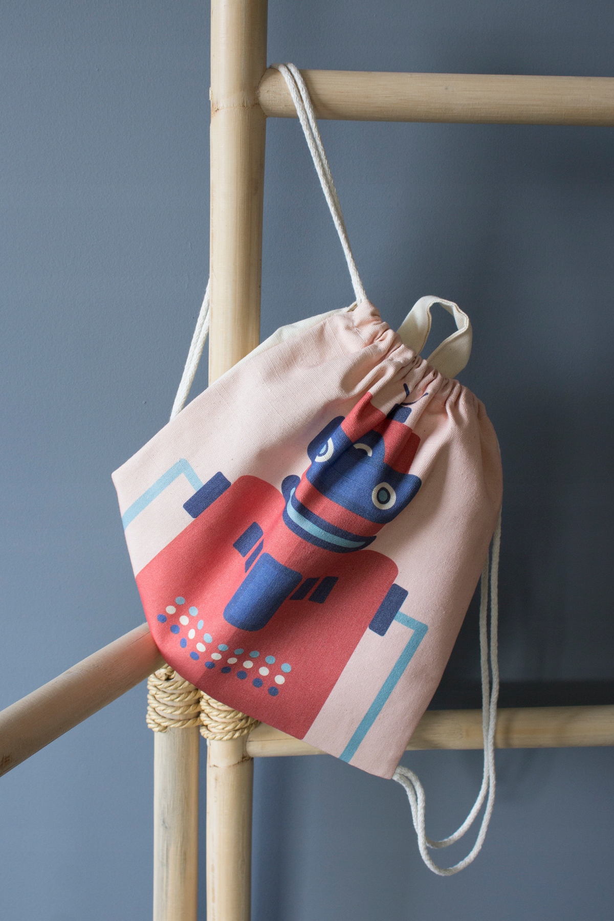РЮКЗАК ИЗ ХЛОПКОВОГО ДОШКОЛЬНИКА 30х30см ЭКРУ 220г КРАСНЫЙ РОБОТ принт