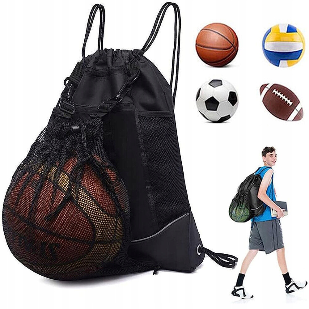Футбольная сумка на шнурке --- поможет вам решить эти проблемы. Он имеет большую вместительность, легкий и прочный, имеет сетчатую сумку и вмещает различные мячи или небольшой спортивный инвентарь, например баскетбольные и футбольные мячи, что очень практично.