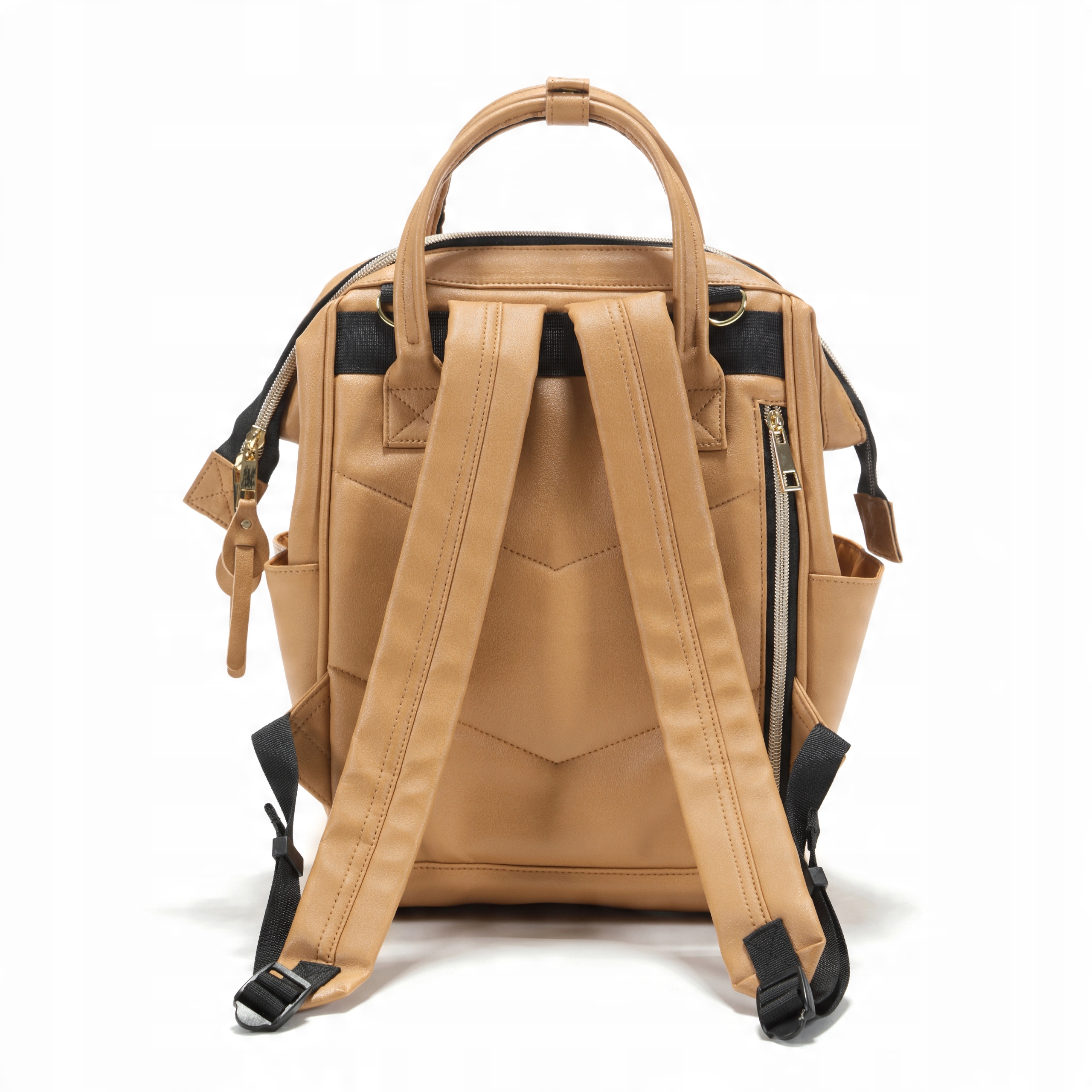 Помимо плечевых ремней, две ручки, которые можно соединить кожаным ремешком и носить рюкзак как сумка - в руках.