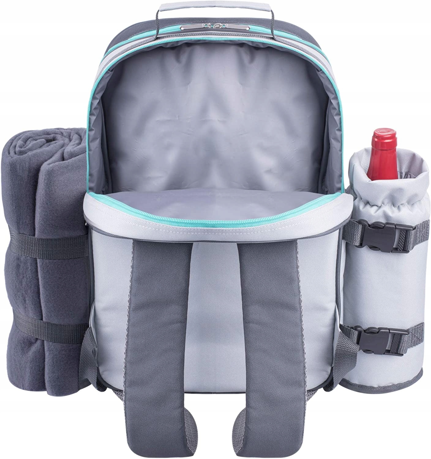 Съемный большой охлаждающий карман с застежкой-молнией сбоку для безопасного ношения большой бутылки вина/воды. В комплектебольшое водонепроницаемое флисовое одеяло для пикника размером 114 х 135 см.