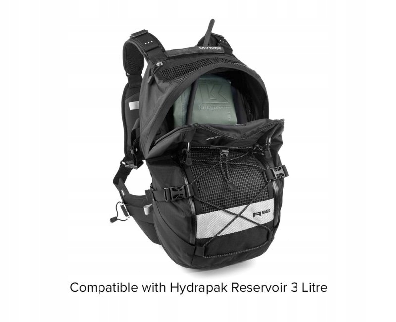 - Основное отделение рюкзака совместим с системой гидратации и защитой спины Kriega.