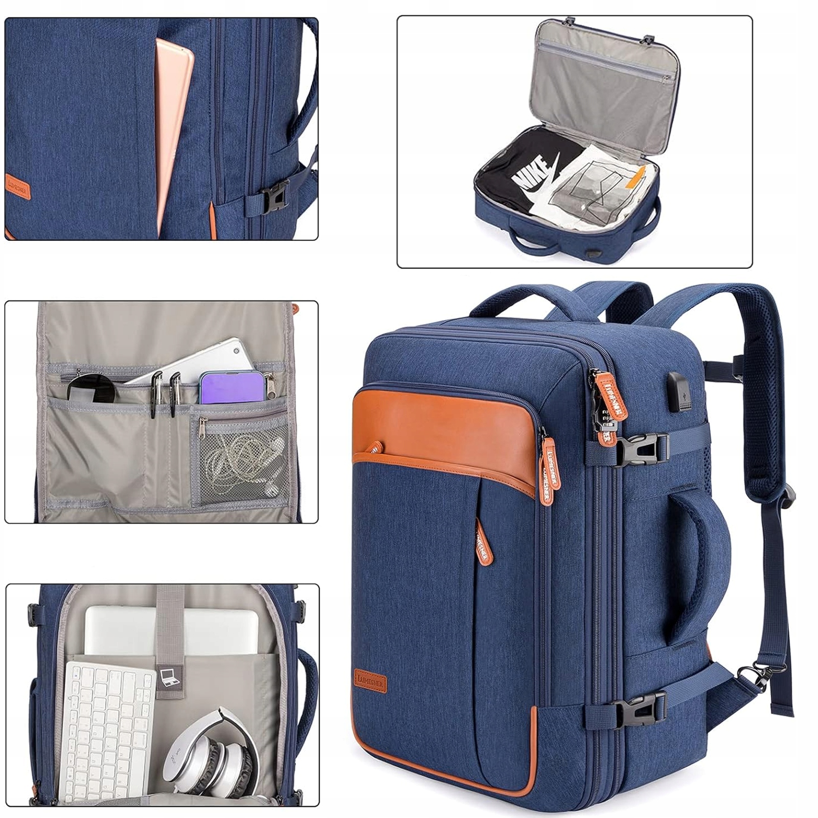 ДОРОЖНЫЙ РЮКЗАК 40 Л С 4 ОРГАНАЙЗЕРАМИ ДЛЯ НОУТБУКА 17 ДЮЙМОВ ДЛЯ ЖЕНЩИН МУЖЧИН СИНИЙ