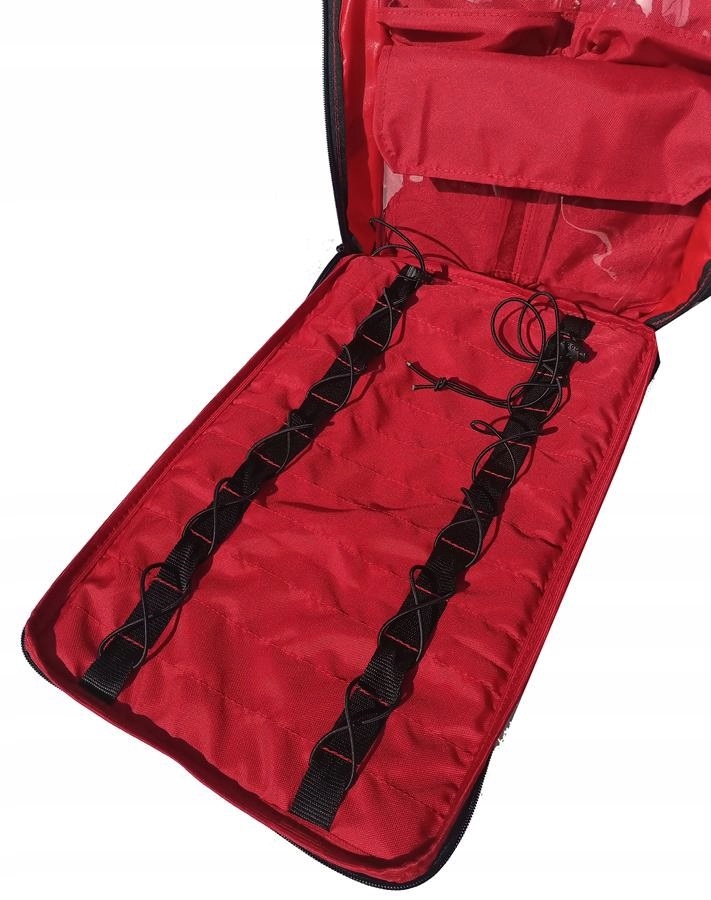 - Внутри основного отделения 3 ряда резинок для крепления ампул или повязок, а также 2 сетчатых кармана,