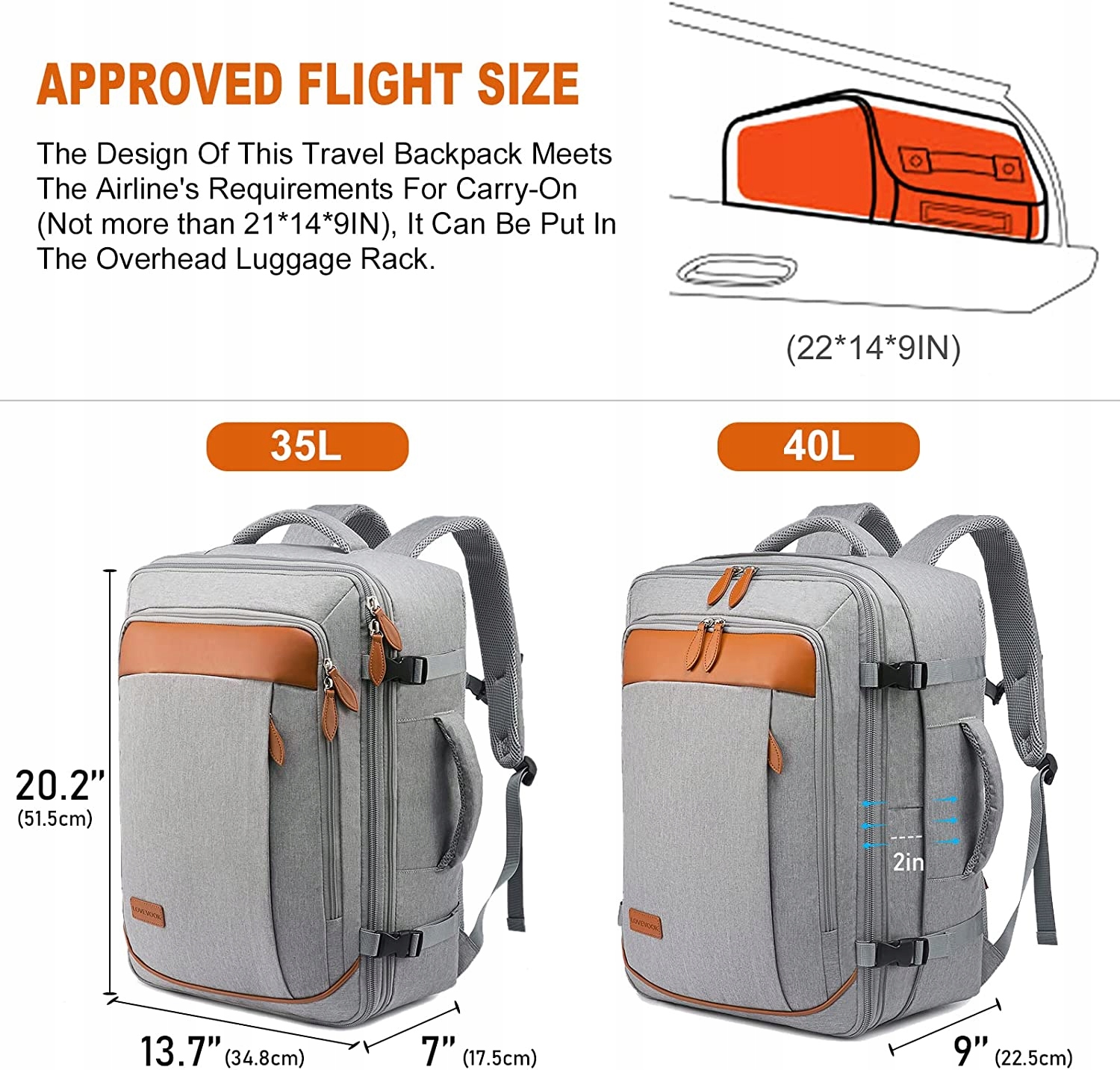 - Размер дорожного рюкзака можно увеличить и использовать с 36 x 51 x 18 см (35 л) до 51 х 36 х 23 см (42 л). Соответствует требованиям к ручной клади для EasyJet, Ryanair (до расширения рюкзака), Wizz Air, Lufthansa и т. д. Примечание. Перед поездкой ознакомьтесь с точными ограничениями по размерам авиакомпании. Ручную кладь можно разложить на 180°, как чемодан, что позволит вам быстрее пройти досмотр.
