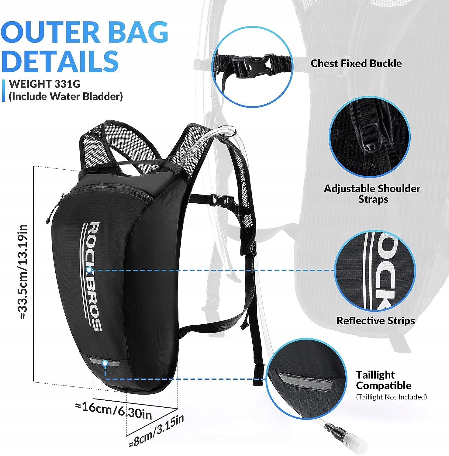 Рюкзак для воды ROCKBROS с мешком для воды. Рюкзак для гидратации с мочевым пузырем. Водонепроницаемая легкая легкая сумка-труба емкостью 2 л с питьевой системой и карманом для напитков для езды на велосипеде, бега и пешего туризма.