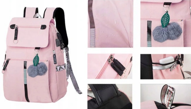 ШКОЛЬНЫЙ РЮКЗАК + НАВЕСНОЙ ЗАМОК + USB-КАБЕЛЬ + РАЗЪЕМНЫЙ КАБЕЛЬ + USB-ВЫХОД + БРЕЛОК С ПОМПОНОМ